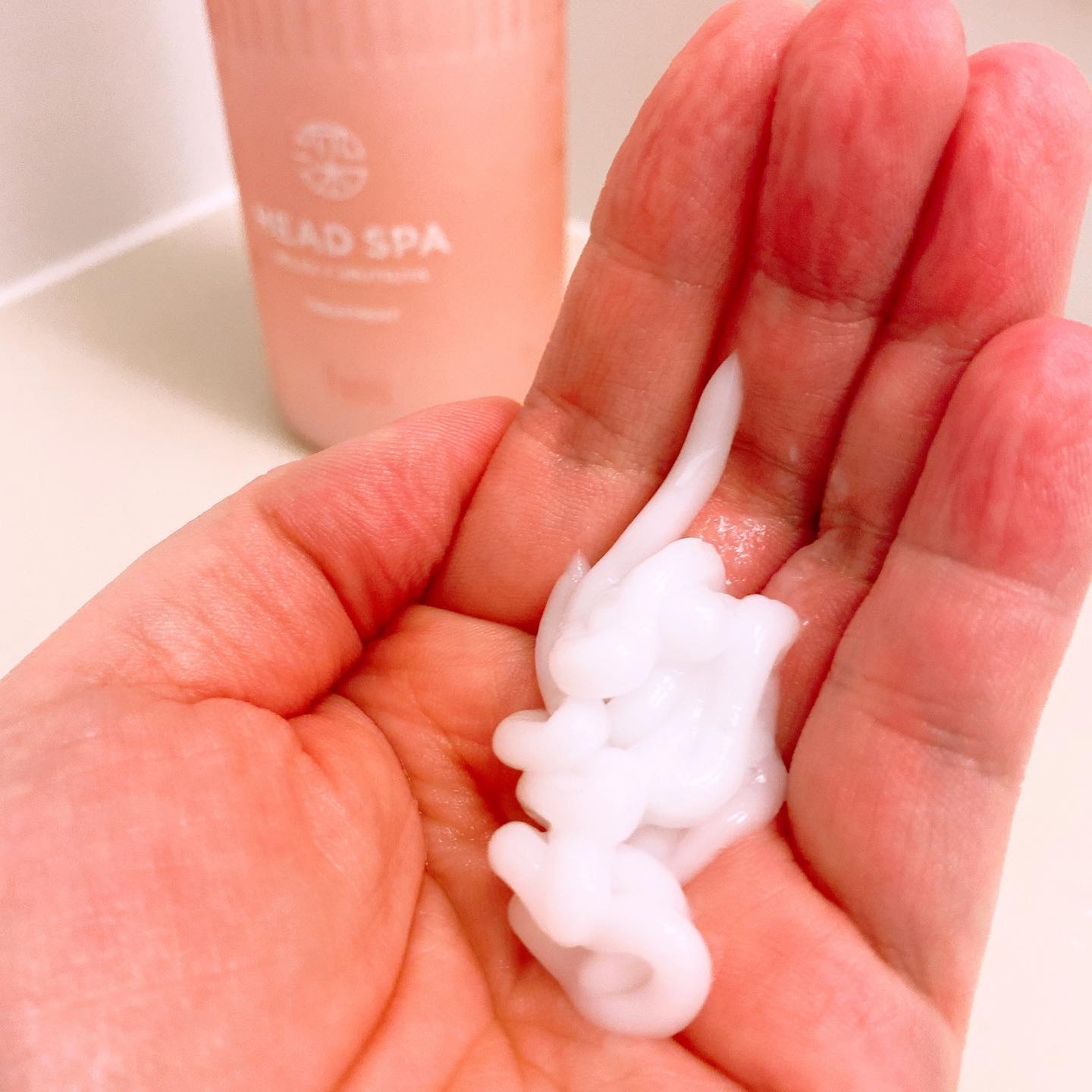 ヘッドスパ帰りのような仕上がりを提供するプレミアムなh&sのシリーズ。 スパリセット処方が地肌と髪のすみずみまで浸透し、毛穴の奥の皮脂や汚れをすっきりやさしく洗い流してくれるそう。 爽やかな水色のボトルが可愛い🩵 シャンプーはびよーんととろみのあるテクスチャー。