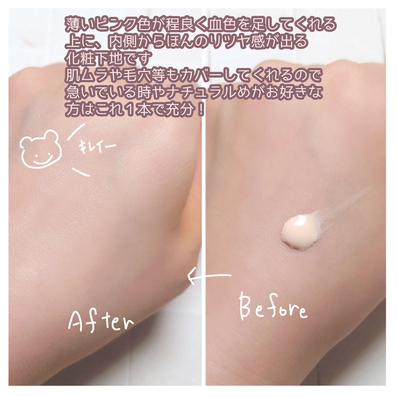 👑個人的下地No.1👑写真だと分かりにくくなっちゃったけど色ムラやくすみをカバーして一気に顔を明るくしてくれる。これをしっかりつけた日と付けない日では夕方の顔色を大きく左右するくらい違うんだ😟🫣日焼け止め効果は薄いけどそれでもトーンアップ効果...