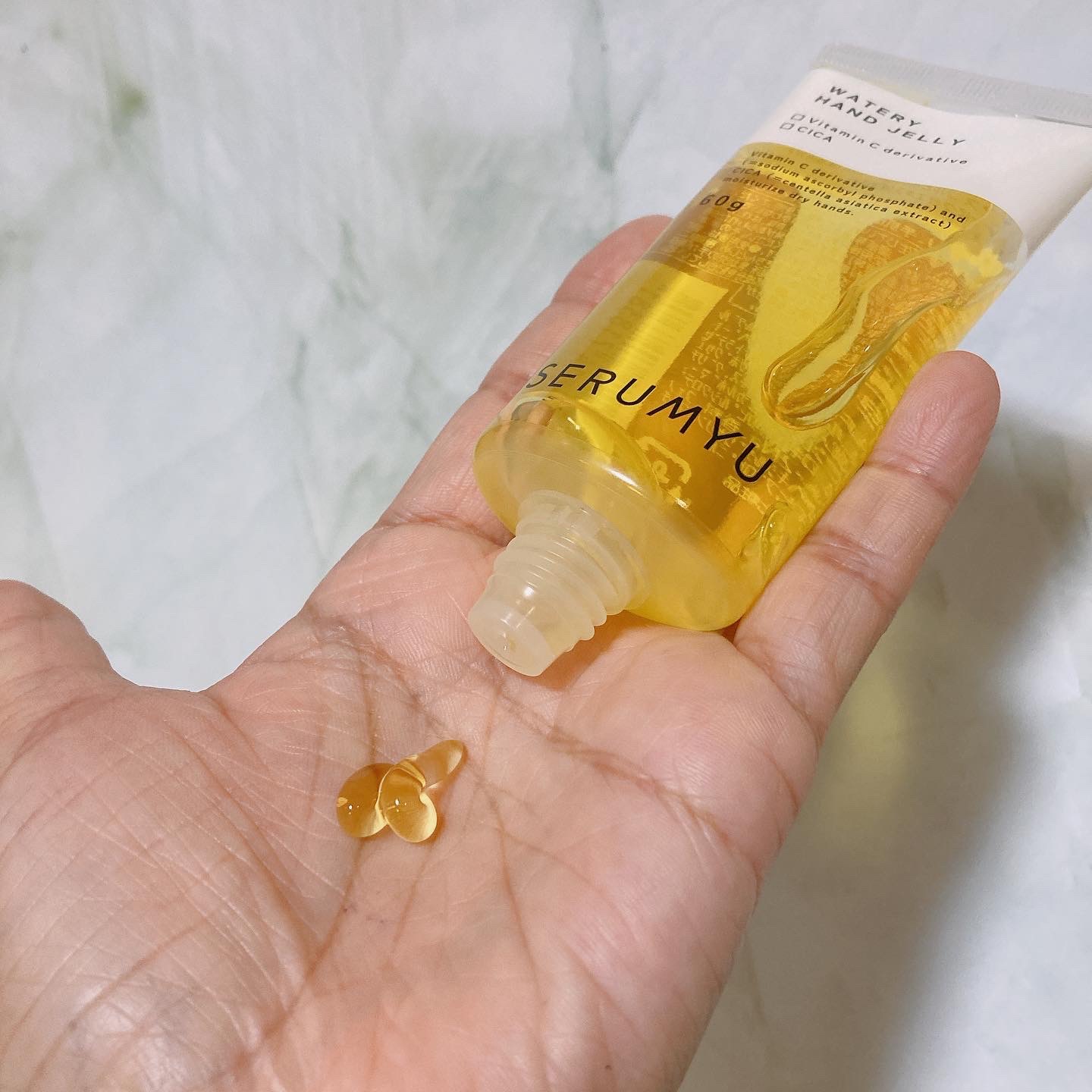 塗った後、「すぐスマホ触れる」ベタつかない!というさらさらハンドジェリー🙌✨ ビタミンカラー💛とシンプルなデザインのチューブが素敵でしょ! べたつかずすぐにスマホを触れるから操作がスムーズなところもお気に入り💛