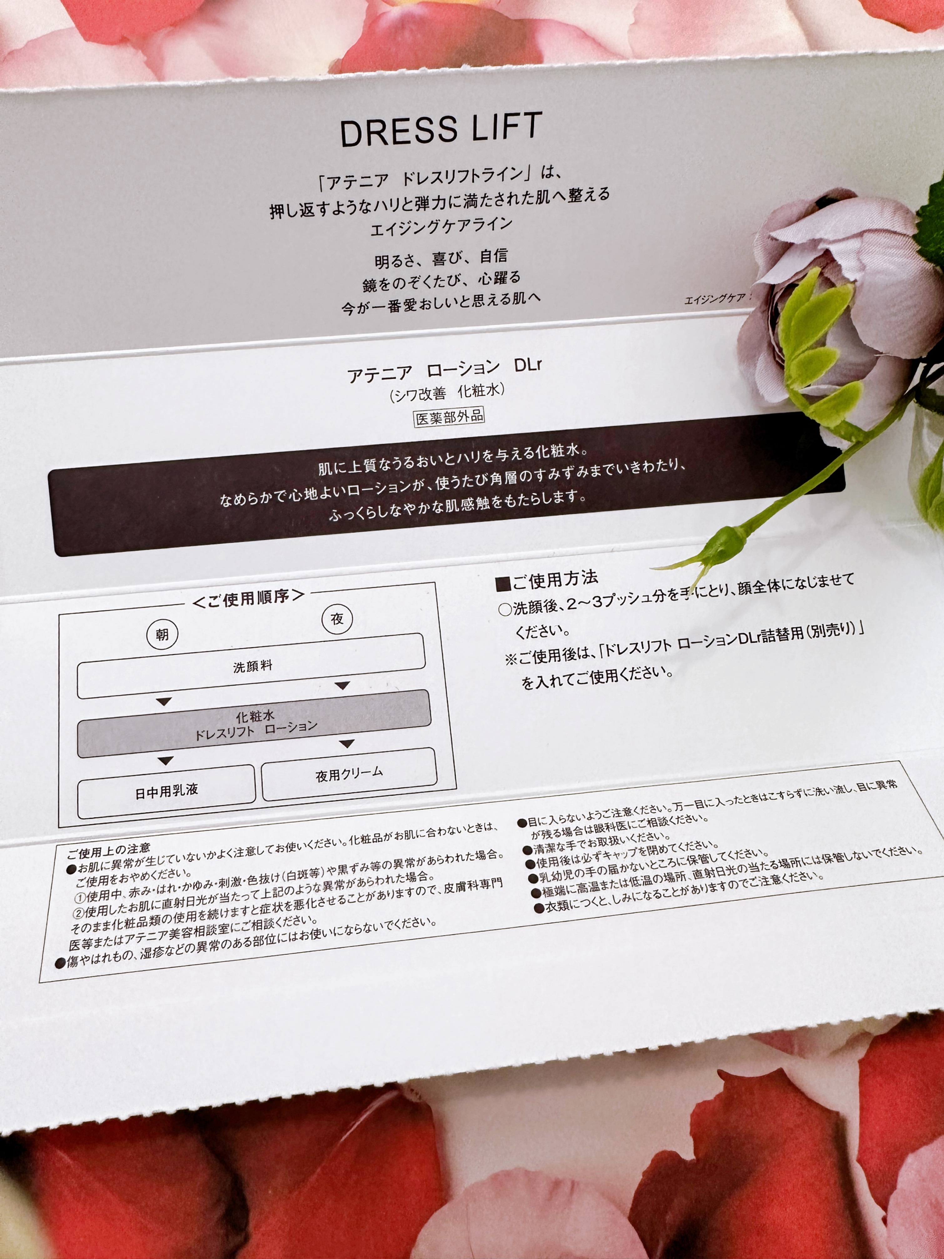- 【医薬部外品】 [販売名:アテニア ローション DLr] 肌に上質なうるおいとハリを与える化粧水。 なめらかで心地よいローションが、使うたび角層のすみずみまでいきわたり、 ふっくらしなやかな肌感触をもたらします。