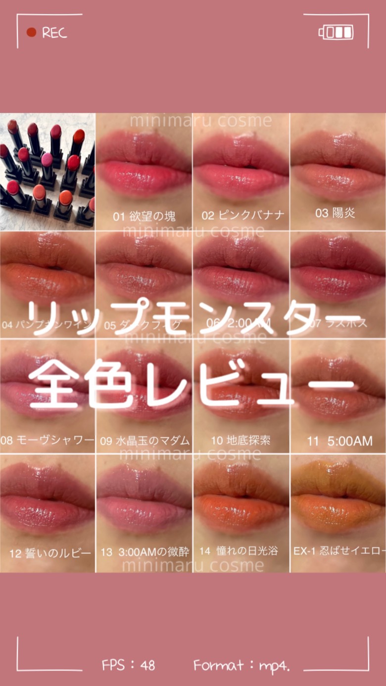⚠️リップモンスターはシアーな発色なので、地の唇の色によって発色が異なります。 私のすっぴんの唇の色も載せていますので、ご参考まで! 📣【新色3色のレビュー】は以下。 クリックで見れます。 📣【新色を含む全色レビュー動画】は、YouTubeに投稿してあります。 プロフィールのYouTubeマークか、下のURLをコピペして検索してください🙏