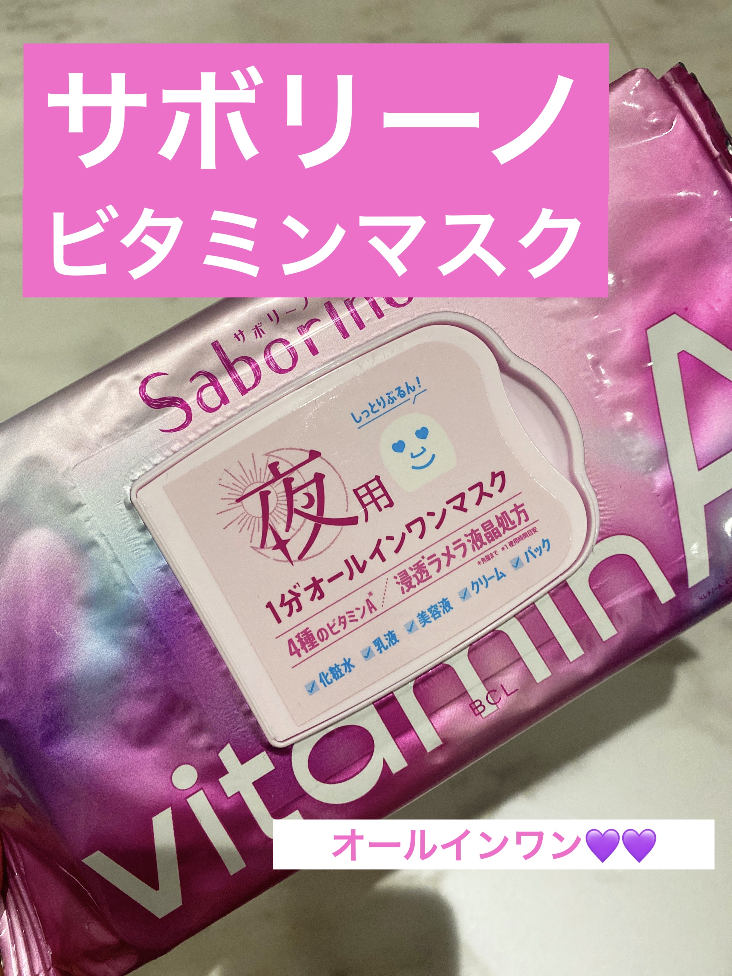 サボリーノ【お疲れさマスクプレミアムビタットA】4種のビタミンA配合。うるおいとハリでぷるんと肌に🥹💕化粧水、乳液、美容液、クリーム、パックがこれ1枚で完結!!1分※1でビタ沼へ😍瞬間浸透※2のオールインワンシートマスクです✨️シートマスクを...