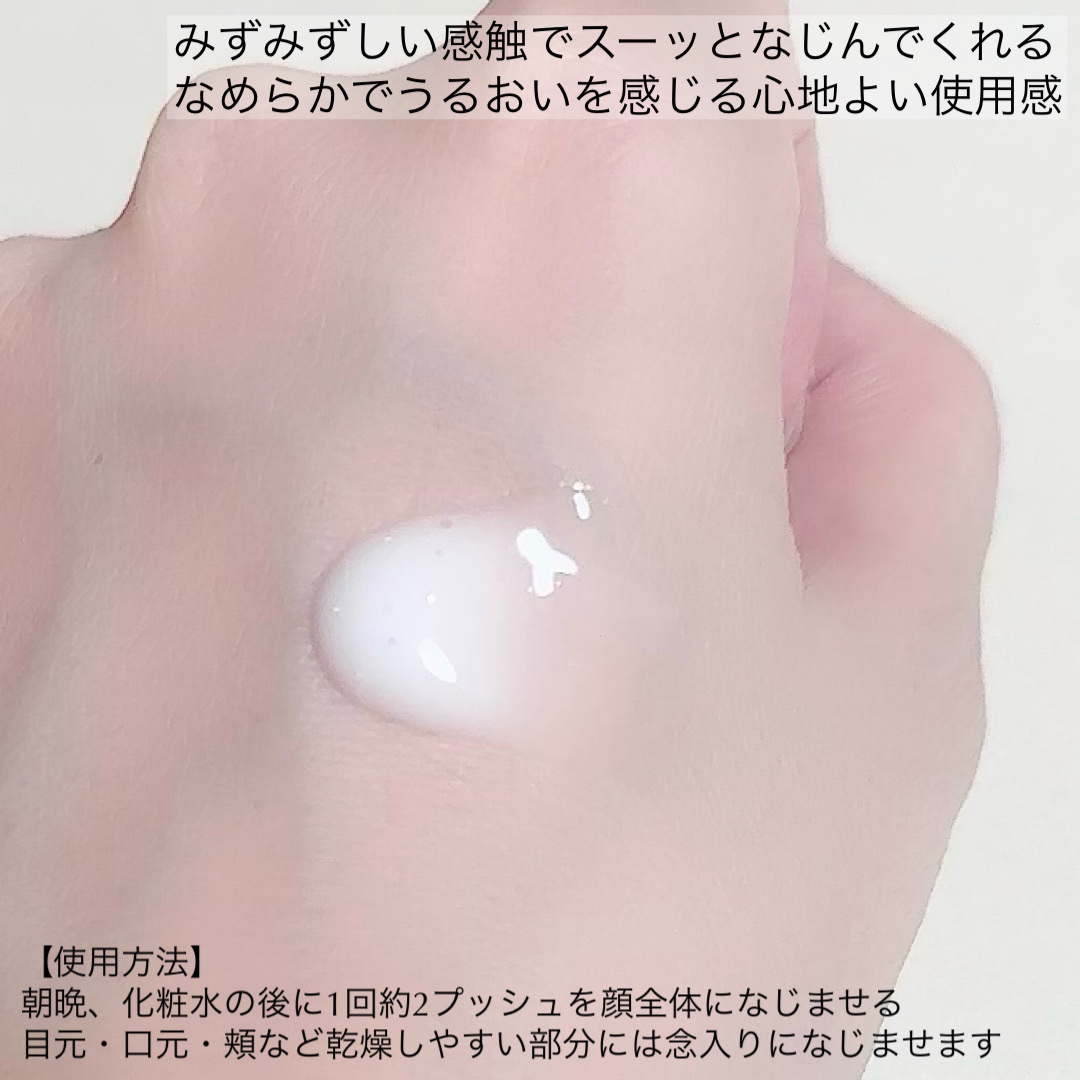 | サラッとした伸びのいいテクスチャーでベタつきがなく、スッと肌になじんでいく使用感がすごく好き! | 詳細を見る | |
