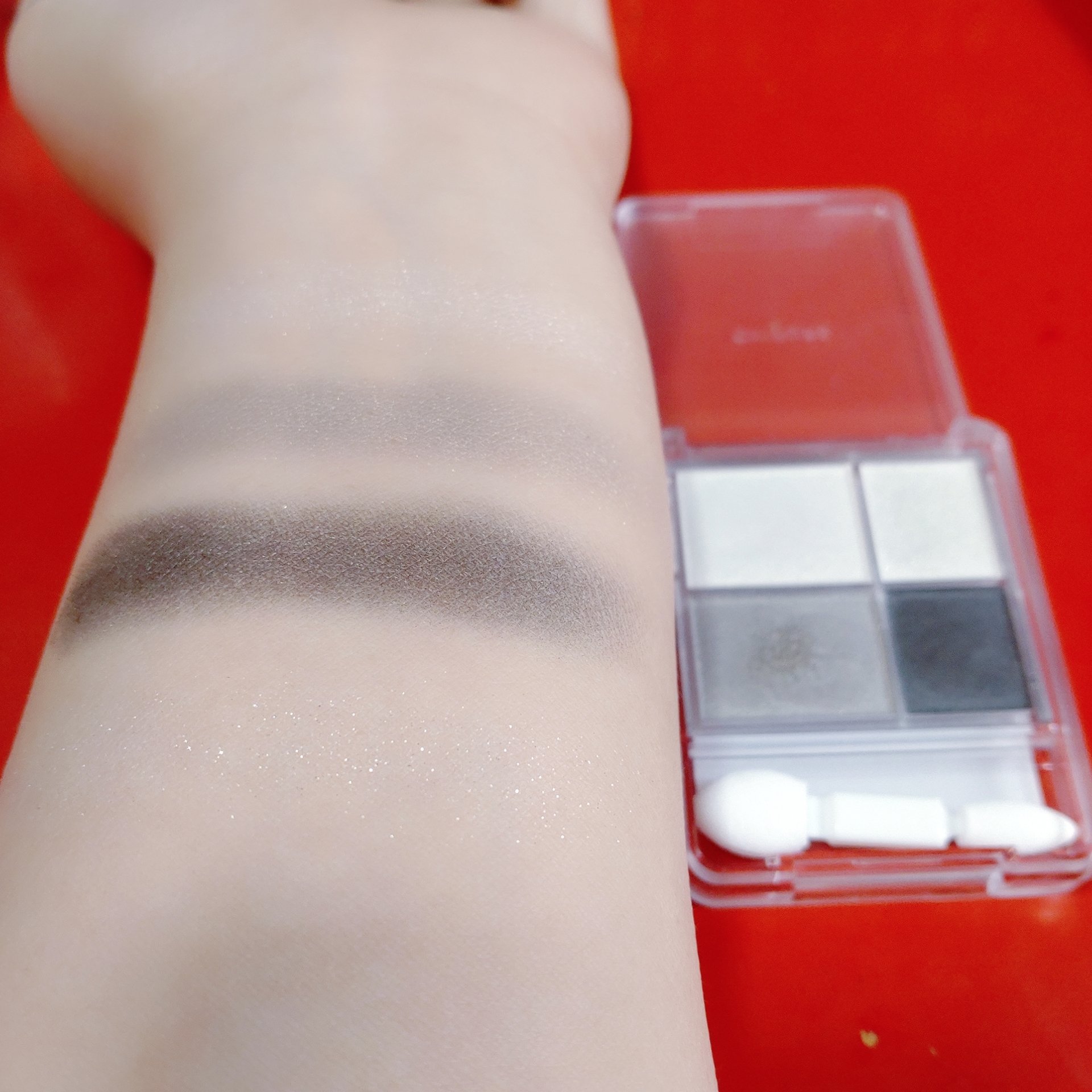 プチプラのクオリティじゃないっ!! 発売前からチェックしていたけれど、ここまで可愛いとは…😆 絶妙カラーで目もとのくすみを飛ばして*明るい印象に🩷 横割りグラデーションでメイクし、立体感をより出したかったので最後に1番左のカラーを上まぶたの真ん中と涙袋にのせています🙆 肌馴染みも良くて粉飛びも感じにくかったです💕 ブラウンの方も店頭に出てたら買おうかな💓