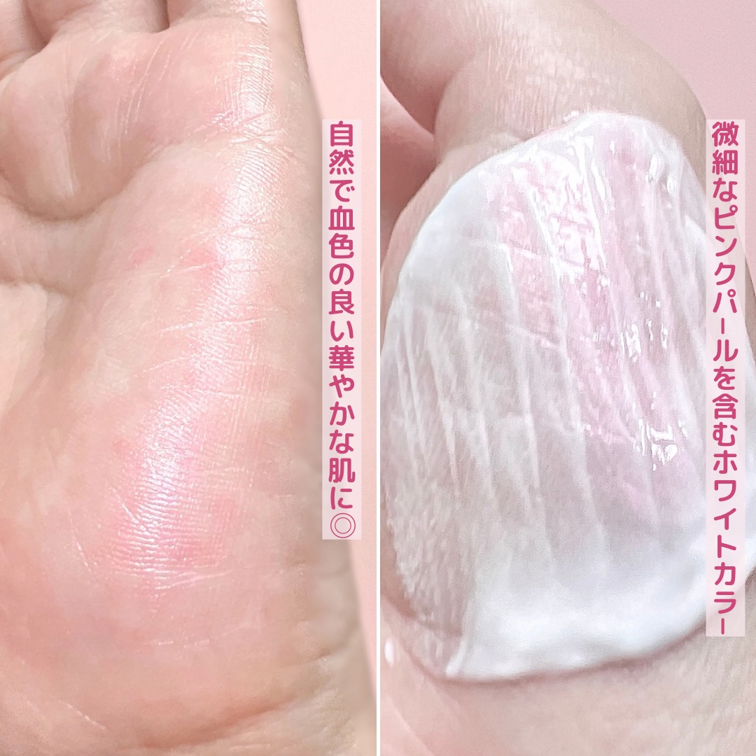 うるおいを与えるテクスチャー 凹凸のないなめらか肌へ ピンクパールでツヤ肌へ みずみずしいテクスチャーで 肌に塗布すると伸びがいいです。 香りもほんのりピーチ🍑 ジューシーなツヤ肌になれそう☺️