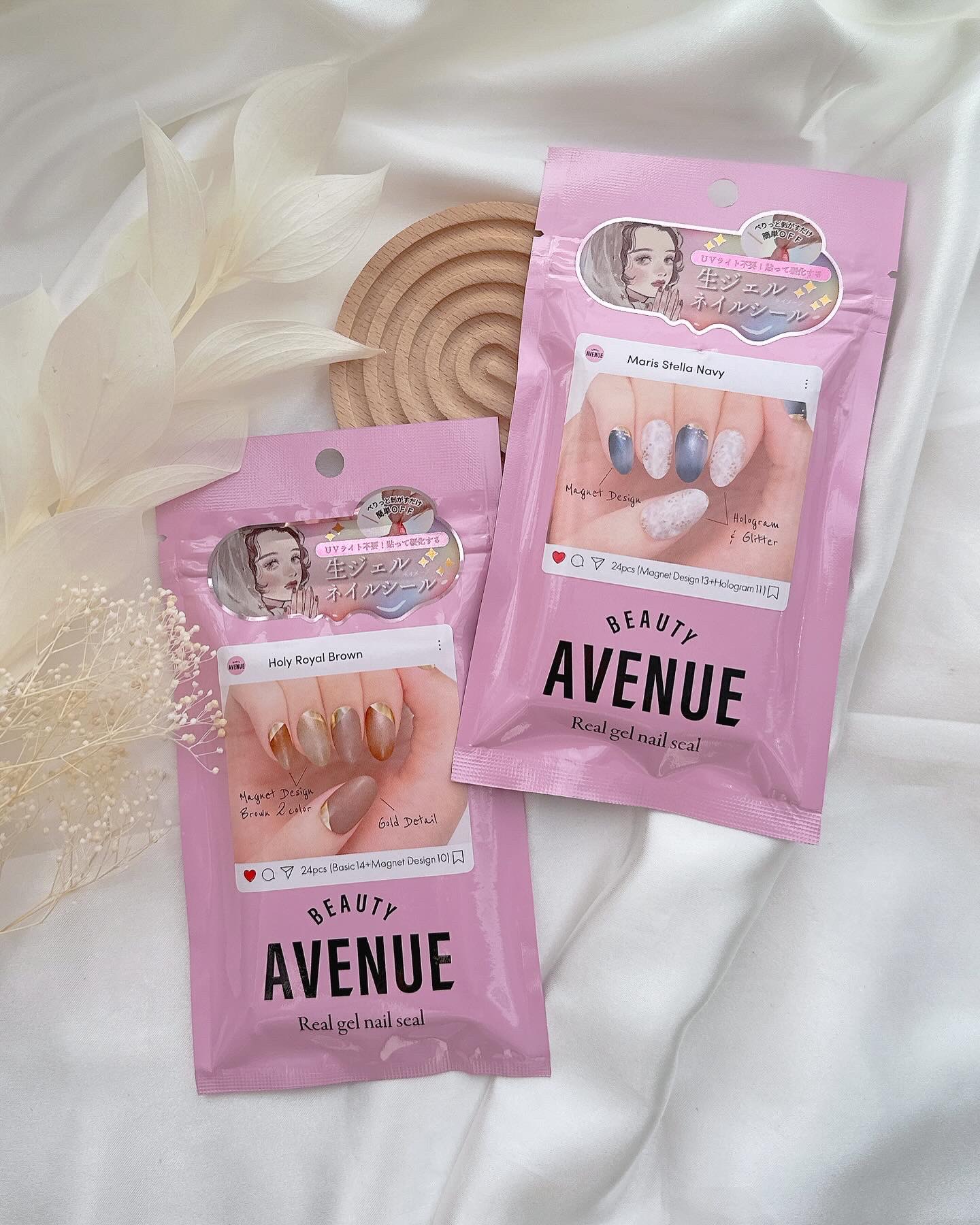 上品でロマンティックがデザインが登場✨ 人気イラストレーターameさんとコラボしたクラシカルな女の子のパッケージ可愛すぎじゃない?🥺💓 簡単すぎ〜最高😆‼️ ちなみに昼間の自然光2時間でも硬化するし、早く硬化したい方はUV&LEDライトで30秒硬化しても🆗 24枚入りで¥1320とお手頃価格なのも嬉しい🥰 1シートで2回分使えるから1回分¥700以下とお財布にも優しいよ♡ お手軽に秋ネイルにチェンジしちゃお🎶