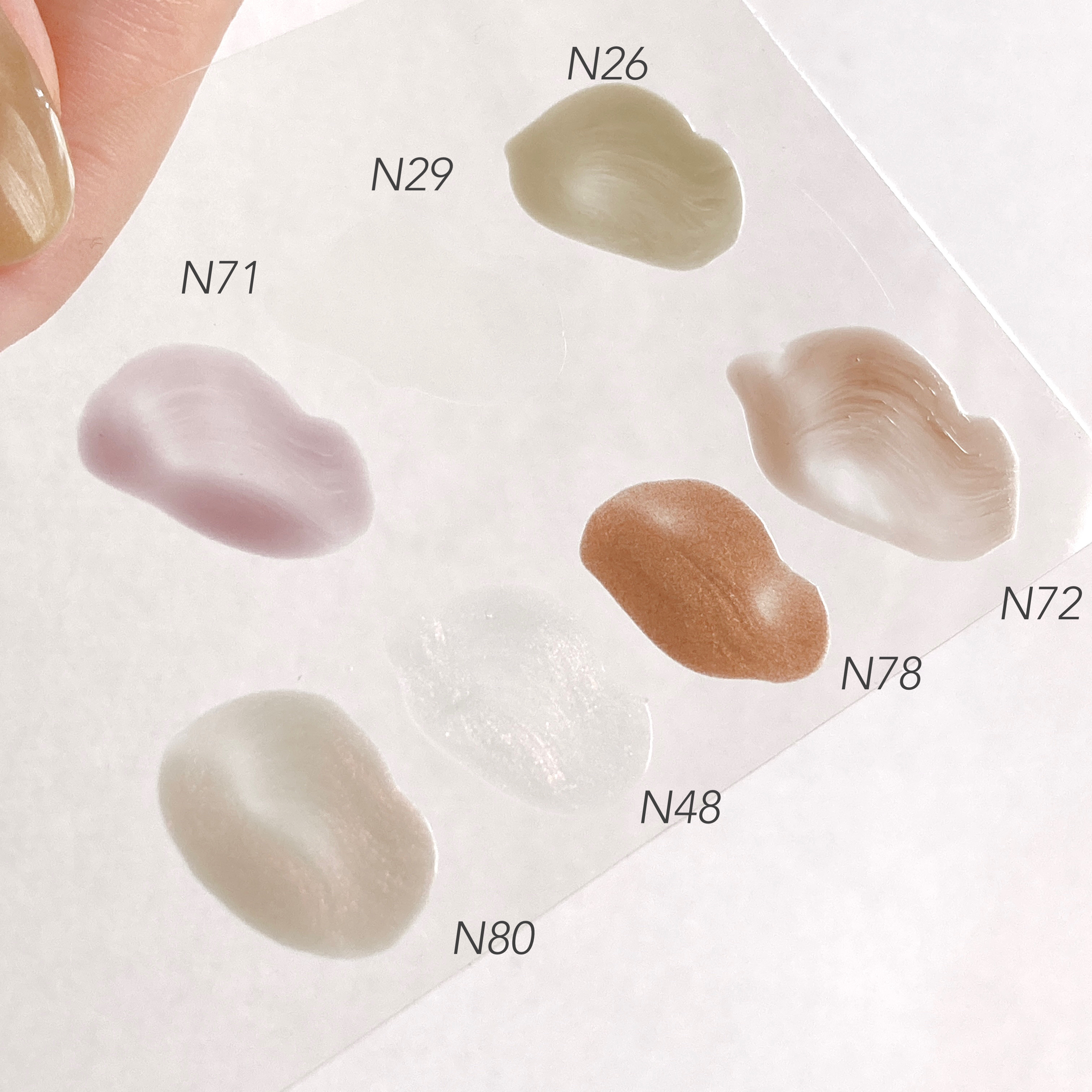 ローズブラウンだけこの中だとすこし透明感が低い色 落ち着いたカラーで使いやすいです 他2つはクリア度が高い色ですベースカラーが透明のままだと 自爪の色が透けてもっとピンクぽさが強く出ます ベース:セリア ピールオフベース トップ:ネイルタウン irogel グロッシートップ (ノンワイプトップ)