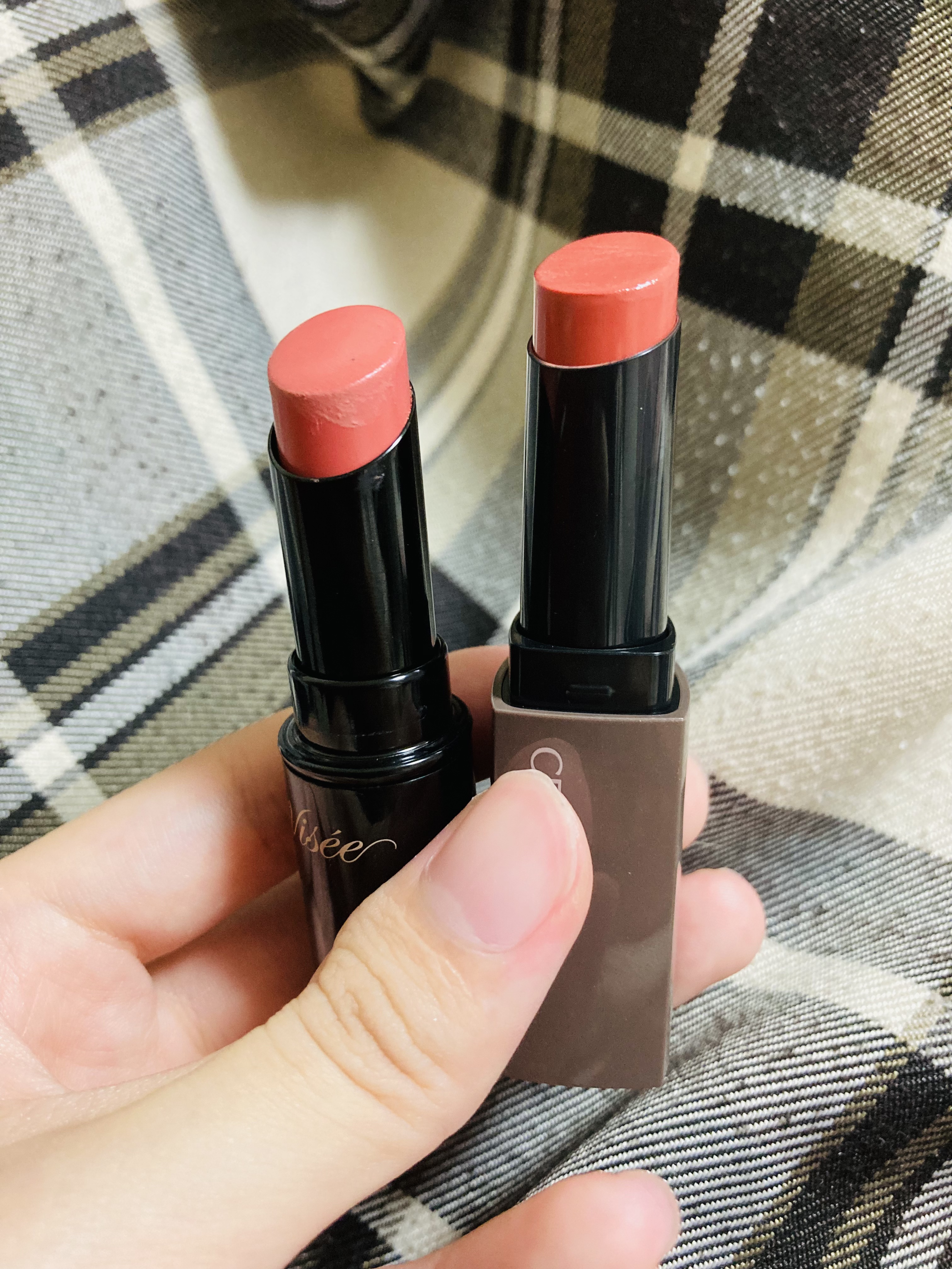 リップカラーシールドのほうがナチュラルめで、発色もよりシアーでした。また、本体(?)の色味も少しくすみがありました。 ヴィセのほうがピンクって感じの色味に近いと思います。 それでもかなり似ているので、PK850売り切れてて買えないから似た色を使ってみたいって人にもおすすめできるかもです🌸
