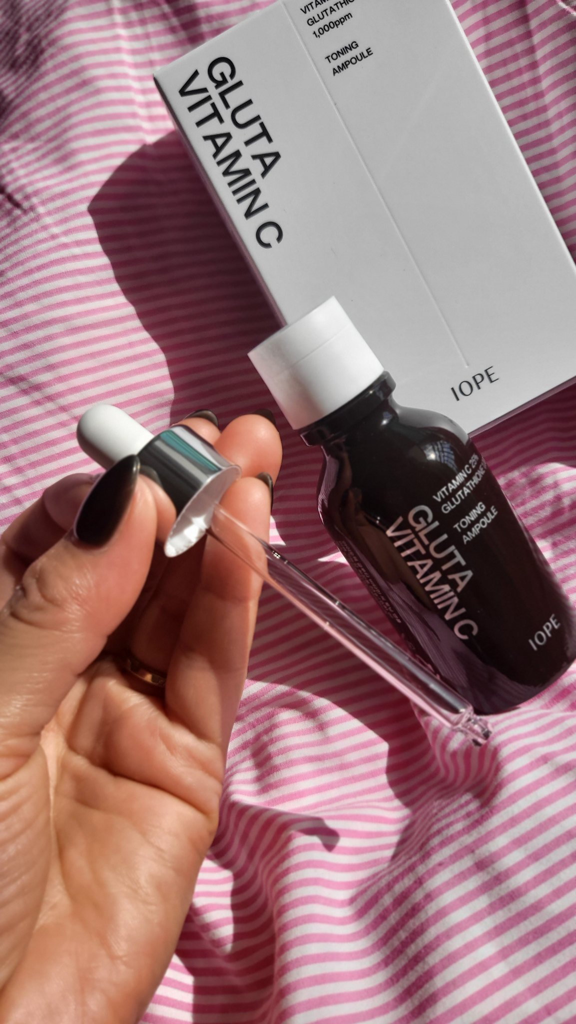 白玉キメツヤ肌を1週間で♡ピュアビタミンC25%と純度98%のバイオグルタチオンのシナジー効果を爆速実感できちゃう、話題のアンプルをレビュー。 IOPE グルタ ビタミンC トーニング アンプルではIOPEの長年の研究結果を元に、ピュアビタミンC25%と純度98%のバイオグルタチオンを最大限の美白効果✨が発揮できるように配合。 使用後3日でキメが整い(角質量やごわつきの改善)、7日でトーンアップ&肌のハリ改善を実感!