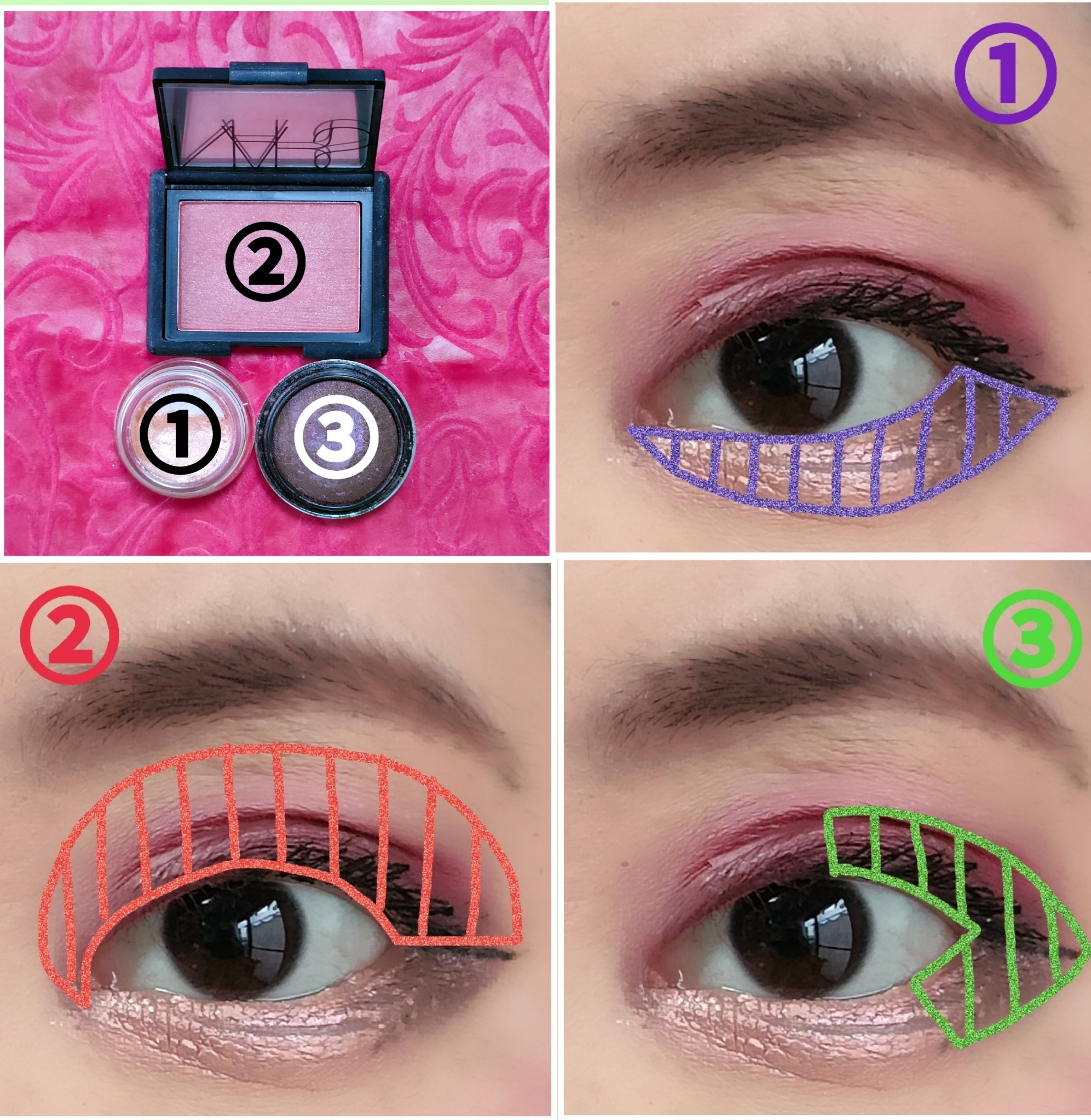 アイシャドウパレットは、URGLAM UR GLAMBLOOMING EYE COLOR PALETTE 02を、使用しました。 マスカラは、MAYBELLINE NEW YORK コロッサルボリュームエクスプレスを、まつ毛全体にまんべんなく塗ります。 リップは、wet 'n' wild MegaLast Lip Colorを、唇全体にまんべんなく塗ります。