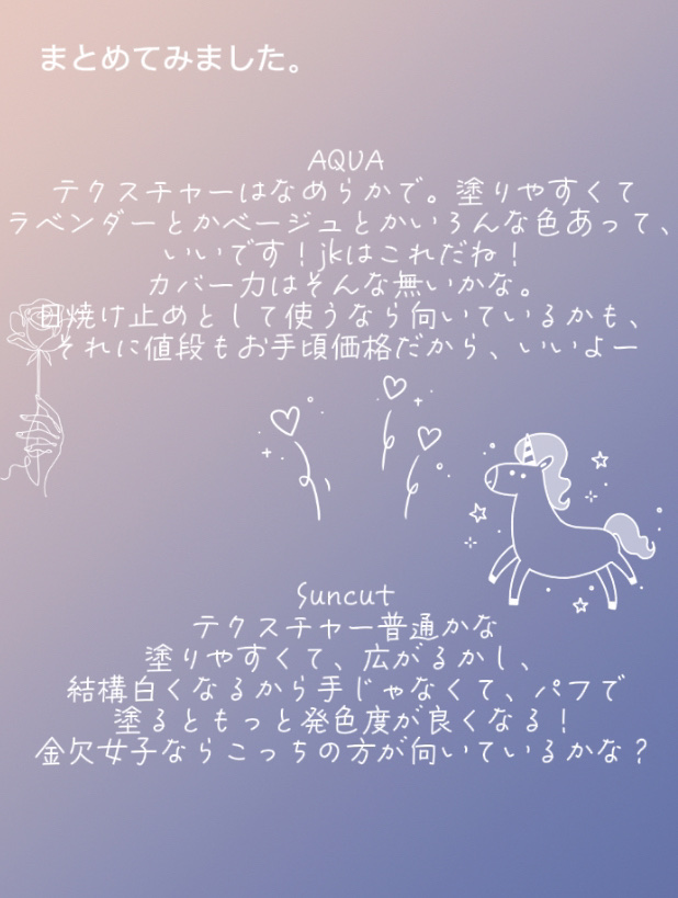 | 日焼け止めローションランキング第45位 | 美肌UP♡フィルター効果で色ムラ・凹凸補正。こすれても色落ち、色移りしにくい! | 詳細を見る | |