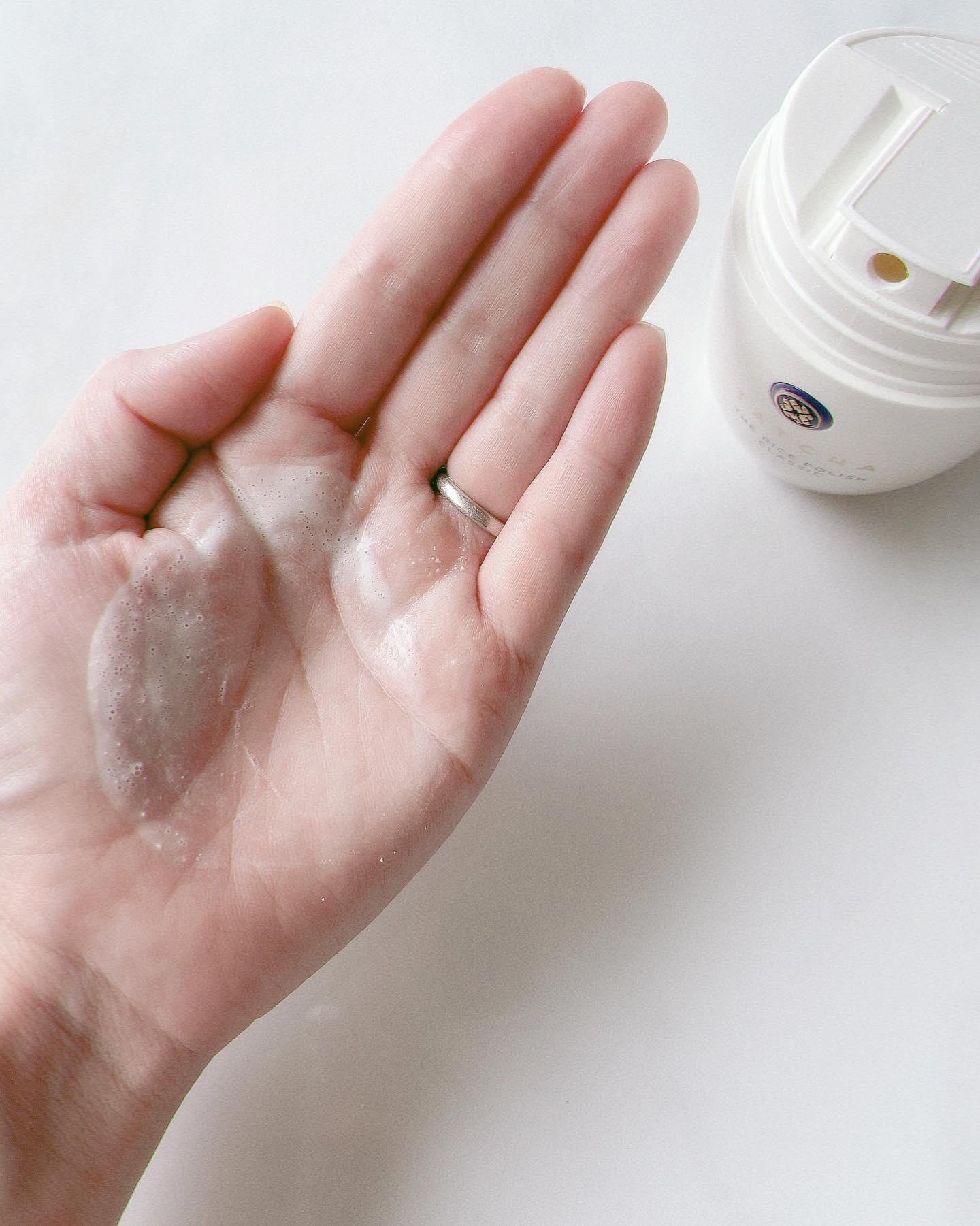 - 結晶セルロース、コメ粉、ラウリルリン酸Na、ラウロイルグルタミン酸Na、ステアロイルグルタミン酸Na、水、ココイルグルタミン酸Na、ラウリルベタイン、ラウロイルメチルアラニンNa、サッカロミセス/(チャ葉/オキナワモズク/コメ)発酵液、パパイン、コメヌカエキス、セリシン、加水分解シルク、加水分解コンキオリン、プロパンジオール、デキストリン、ラウロイルグルタミン酸ジ(フィトステリル/オクチルドデシル)、エチルヘキシルグリセリン、トコフェロール、BG、エタノール、フェノキシエタノール