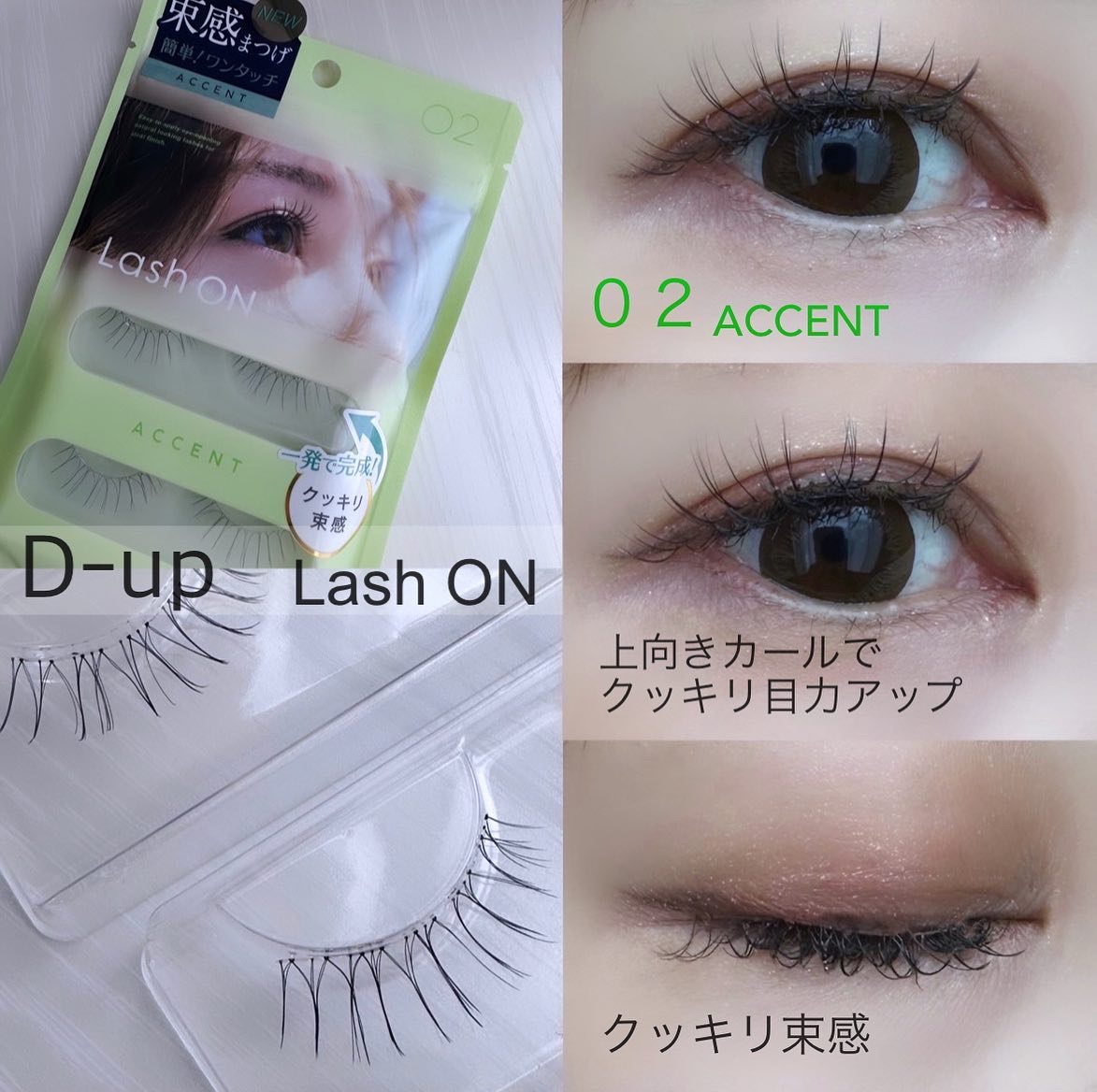 - “ワンタッチ”で理想のまつげが叶うつけまつげです。 最初から束になっているからそのままつけるだけで簡単に”束感まつげ”が完成する01・02、抜け感のあるデザインでサロンで施術した”まつげエクステ”のような仕上がりになる03~06の全6種。 自まつげが少なくても、短くても、生えグセがあっても、誰でもキレイなまつげに。ナチュラルな繊細毛で、自然かつ華やかな目元を演出します。