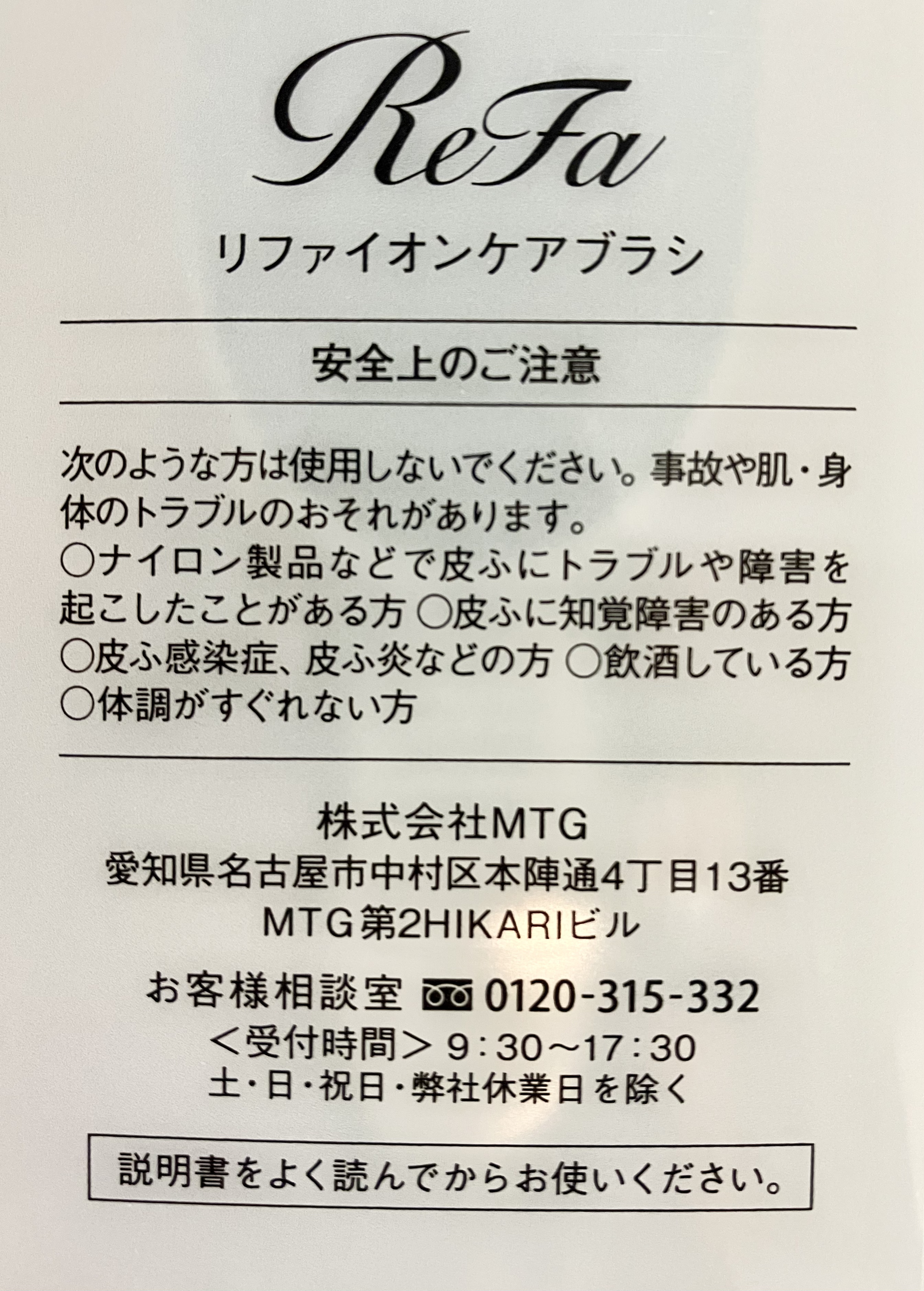 - 美しい髪のために大切なのは、髪の汚れを落とすだけではなく、 頭皮の毛穴汚れまでしっかりと落とすこと。 毎日のシャンプーに、頭皮の毛穴をブラッシングする習慣を 取り入れてすっきりとすこやかな頭皮をキープ。 商品名 ReFa ION CARE BRUSH リファイオンケアブラシ 材質 【本体】ABS 、ポリアセタール、ナイロン、セラミック 【スタンド】ABS 重量 【本体】約110g 【スタンド】約23g 付属品 スタンド、取扱説明書 サイズ 【本体】約58mm×196mm×50mm 【スタンド】約60mm×60mm×32mm 品番 RS-AI00A Refa製品の不良や故障に関しては、下記にお問い合わせください。 ================== MTGお客様お問い合わせ窓口 フリーダイヤル:0120-315-332 受付時間8:00~20:00(年中無休) ※携帯電話・PHSもご利用いただけます。 お問い合わせフォーム:https://www.mtg.gr.jp/feedback/individual_inspection.html ==================