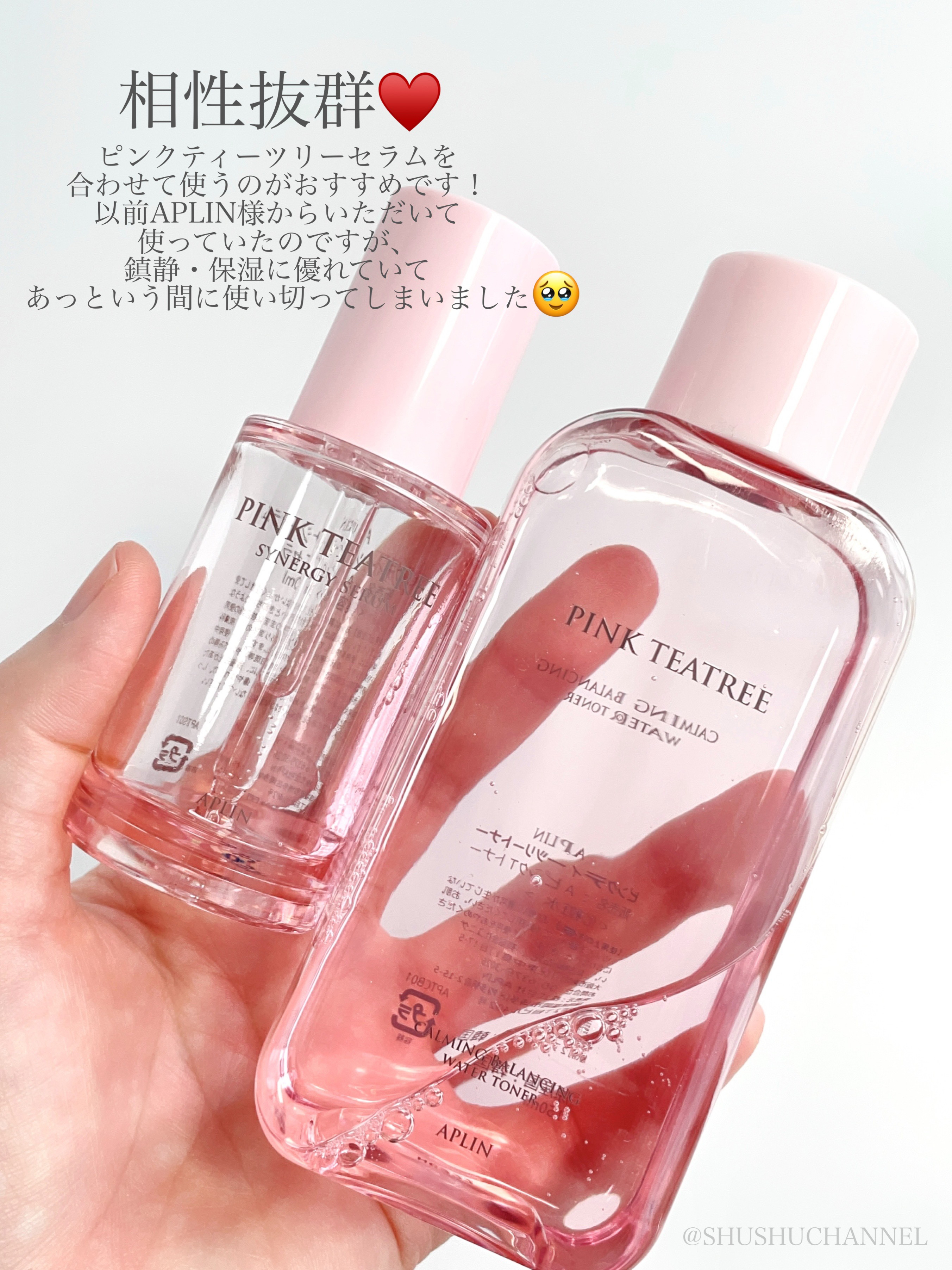ピンクティーツリーとシカ成分によりニキビなどの荒れた肌をケア・予防☝️ このピンク色はビタミンB12成分の色です! さっぱりとしたシャバシャバテクスチャー。甘くフローラルな香りがします💐 たっぷり使ってお肌にうるおい補給を🫧 パケに中身までピンクで可愛いです🥹🎀