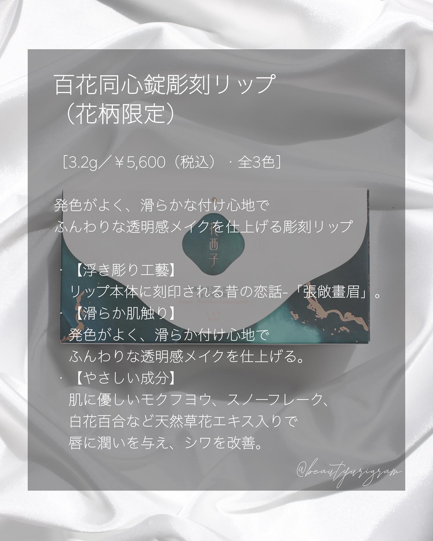 花西子Florasis[フローラシス]美しい‥💓使うのがもったいなくなるほどの芸術作品のようなコスメ✨ꕤ百花同心錠彫刻リップ(セミマット)繊細な彫刻がとにかく綺麗で美しい💄💕「張敵が妻の眉を描いた」という伝説に着想を得たロマンティックな彫刻!...