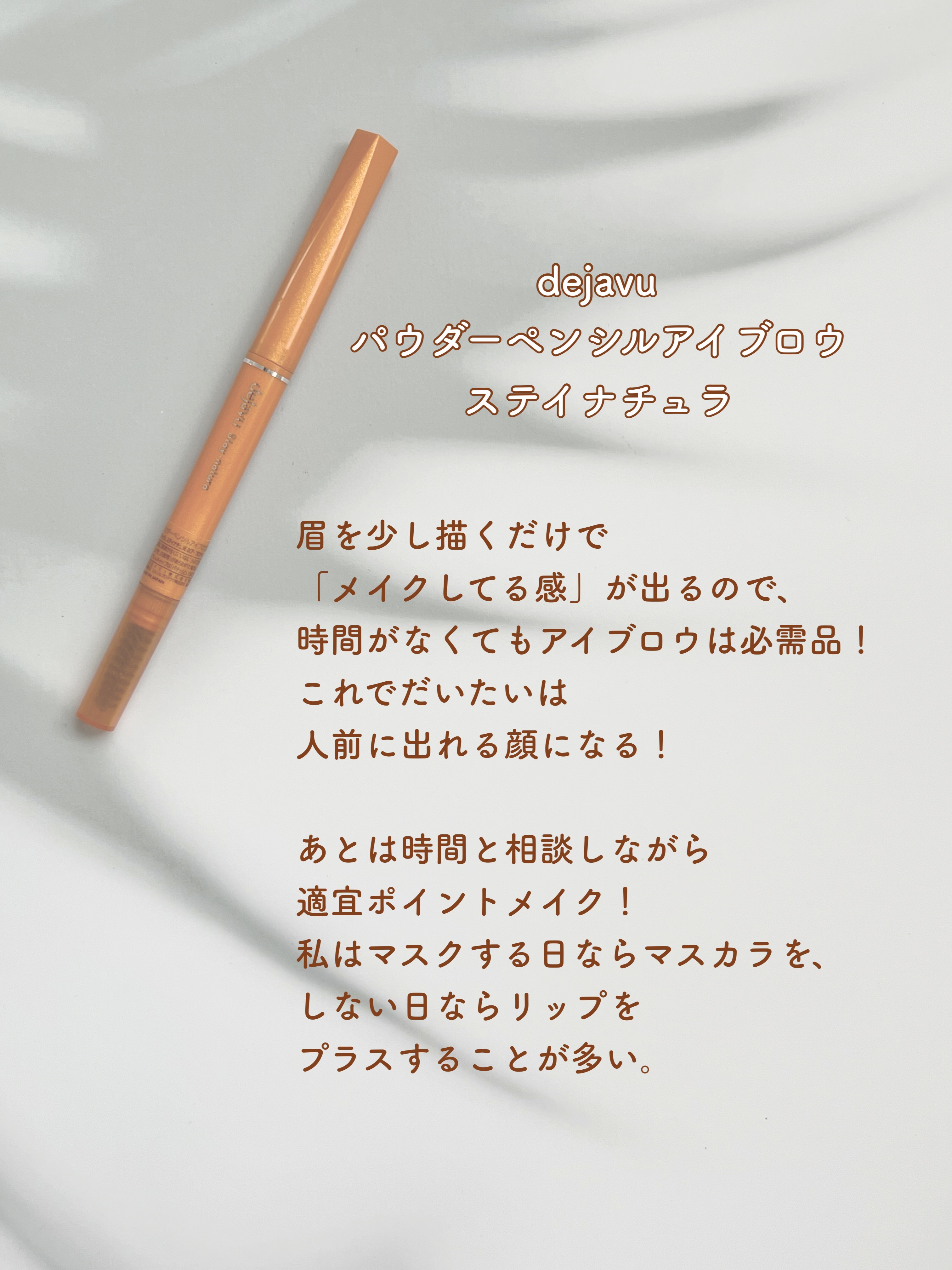 とりあえず人前に出れる顔にはなる 最低限のメイクをする時にお世話になってるアイテムを紹介します(笑) プリマヴィスタ ジャストワン フィニッシュ IHADA 薬用フェイスプロテクトパウダー ちふれ パウダー チーク デジャヴュ パウダーペンシルアイブロウ ステイナチュラ