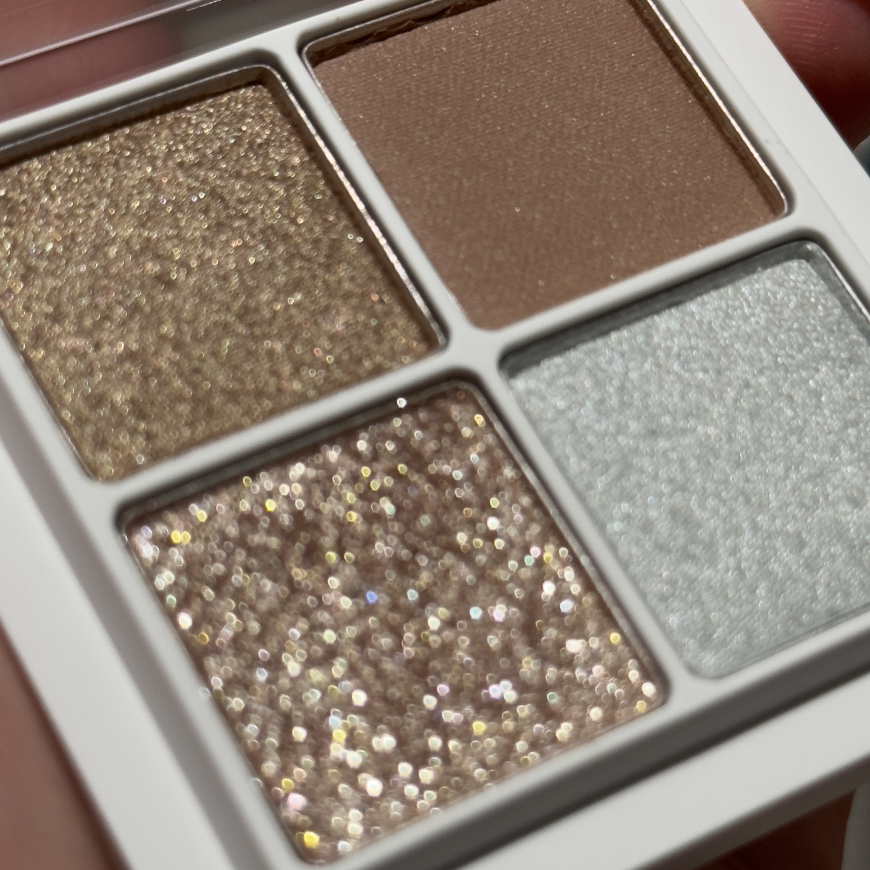 公式推奨のメイクは、右下ハイライトカラーが強く発色しすぎてバブリーな印象に。。。 アイホールは上段2色、涙袋は左側2色で、、、 右下はハイライトとして、透明感のあるお顔になれる。。。