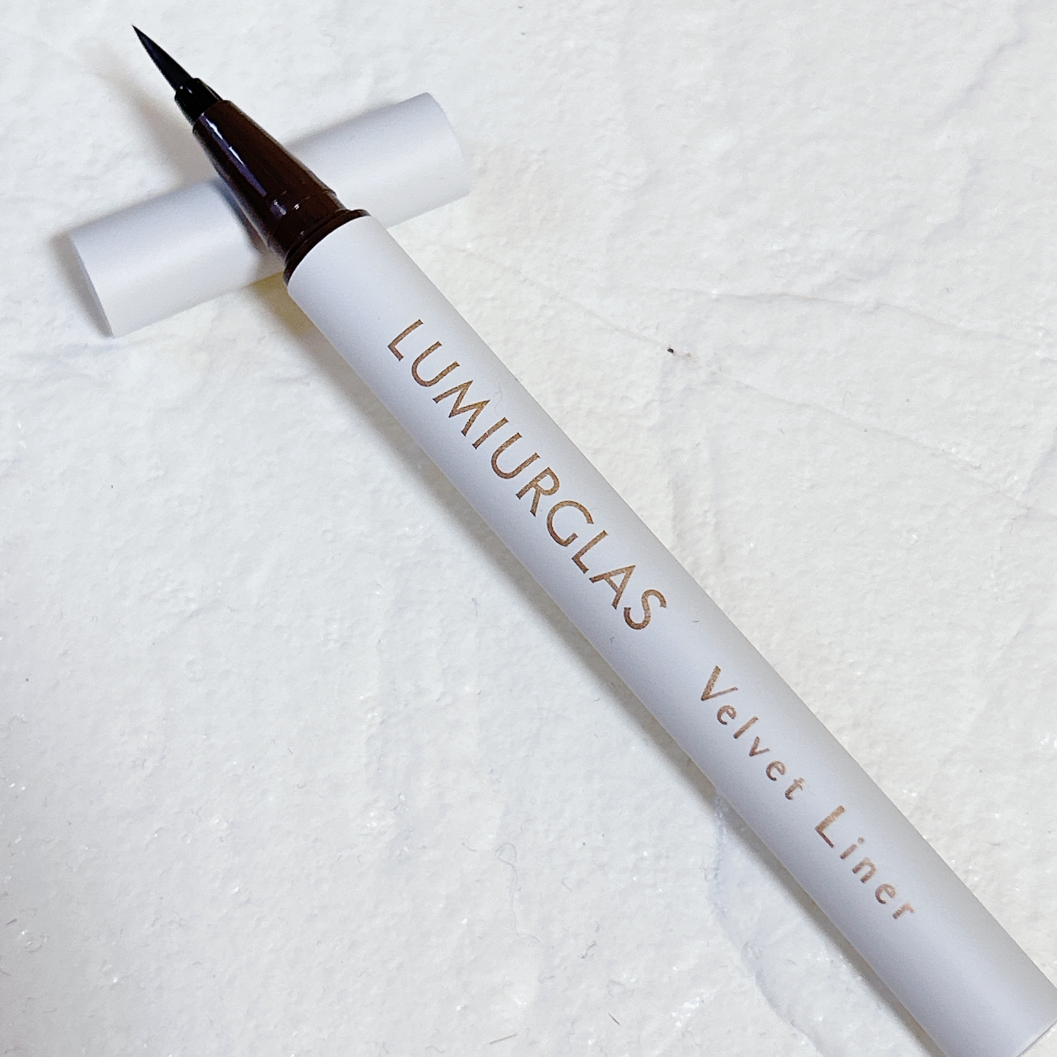 LUMIURGLASのベルベットライナー💓 とぅるんっとした筆あたりがめちゃくちゃ気持ち良い🥺💓 程よい重みで安定感が出て描きやすかった👏 ツヤっとした仕上がりと発色の良さも特長でどのカラーでも目力がアップしそう😍