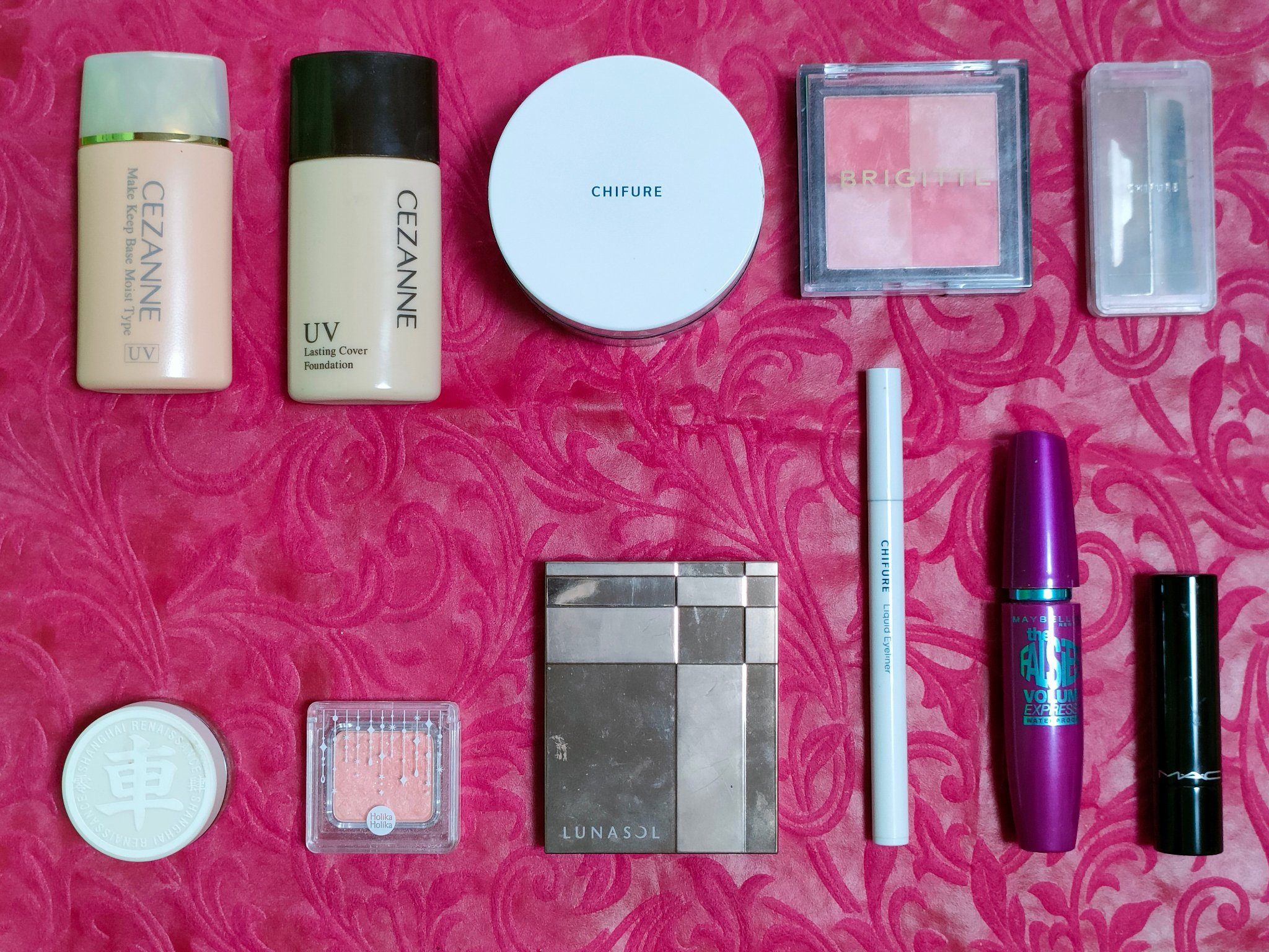 アリィー ニュアンスチェンジUV ジェル RSを、顔全体にまんべんなく塗ります。 RMK RMK ジェルクリーミィファンデーション 103を、顔全体にまんべんなく塗ります。 ジョンソンベビー ジョンソン ベビーパウダーを、顔全体にまんべんなく軽くはたきます。 THE BODY SHOP bronze shade warm glowを、両頬に塗ります。 KATE リフレクトミラーアイズ BR-1の締め色を、眉毛全体にまんべんなく塗ります。 URGLAM UR GLAMBLOOMING EYE COLOR PALETTE 01を、使用しました。 ちふれ リキッド アイライナー 筆ペンタイプ BK30 ブラックを、塗ります。 CEZANNE エアリーカールマスカラを、まつ毛全体にまんべんなく塗ります。 MAYBELLINE NEW YORK コロッサルボリュームエクスプレスを、まつ毛全体にまんべんなく塗ります。 MAYBELLINE NEW YORK SPステイ マットインク 135を、唇全体にまんべんなく塗ります。