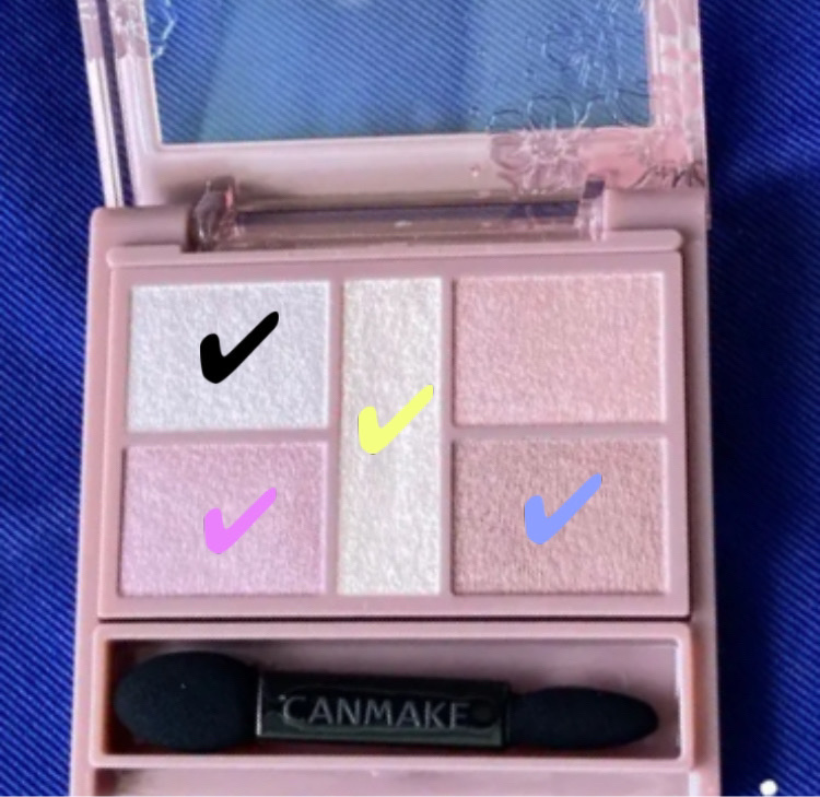 大大大好きなアイシャドウパレットです(ᐡ⸝⸝•̥ ̫ •̥⸝⸝ᐡ)♡♡ とにかく色が可愛い…!! 左上はほんのちょっとだけピンクみがあるホワイトです。ピンクは儚い白みピンクです…♡ こちらを塗るとくすみが飛びます!ただ、ラメも飛びやすいです!笑 アイシャドウベースを使うことをおすすめします。