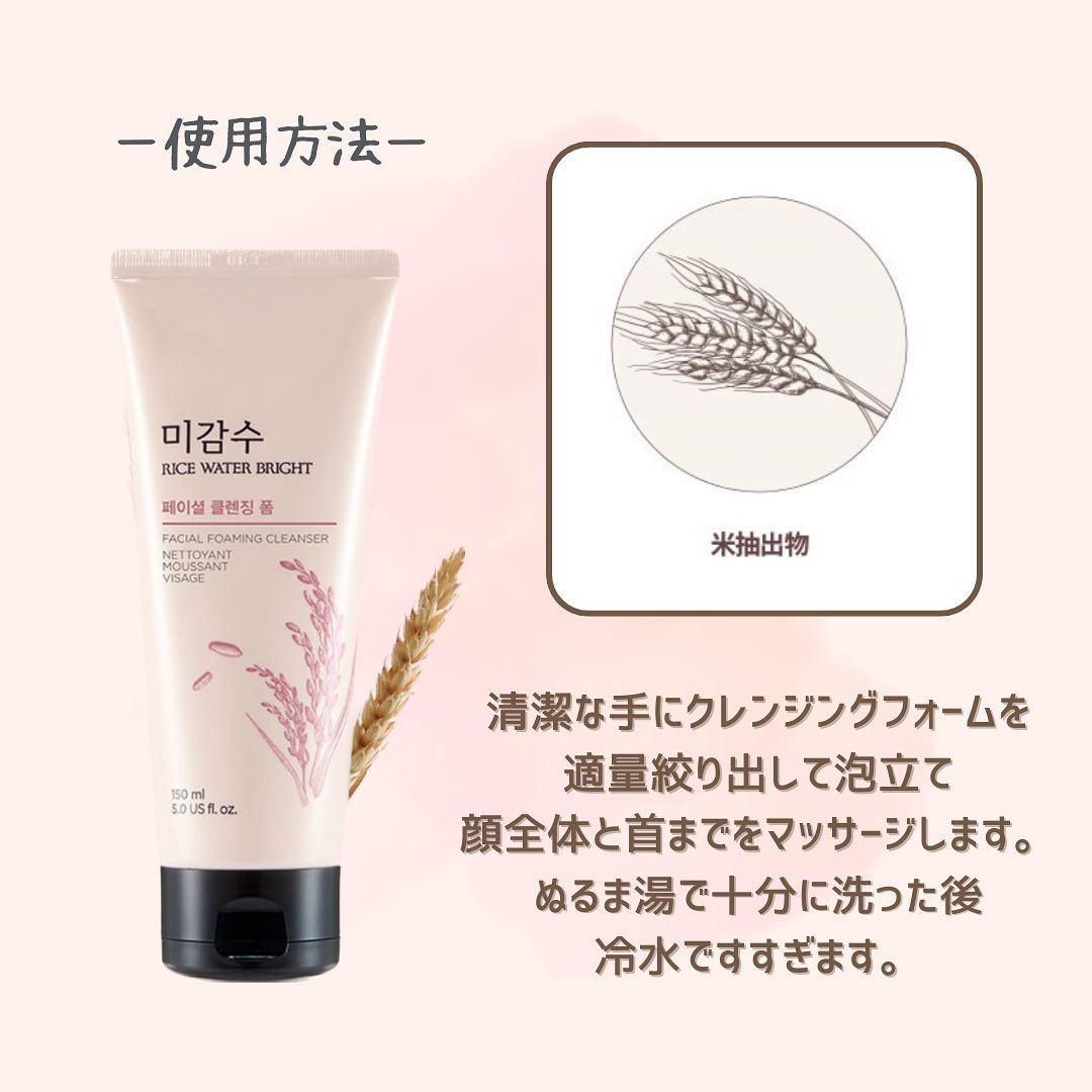 - 米のとぎ汁成分(保湿剤)が配合されたクレンジングフォームです。豊かな泡立ちで肌を整え、透明感のある肌に導きます。