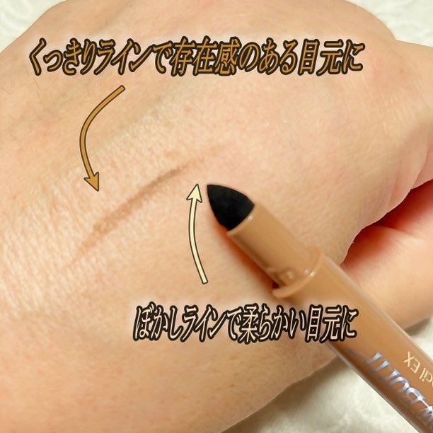 - 1.5mmの超極細ペンシルとぼかしチップがついた、まるでリキッドのような描き心地のアイライナー。 クリーミーな使い心地のペンシルタイプのアイライナーです。 ペンシルとぼかしチップを一体化したことで、これまで綿棒や指を使ってぼかしていた方もこれ1本で簡単にナチュラルな旬のぼかしメイクが完成します。 また、超極細の1.5mm芯で目尻をハネ上げるクールなラインも自在に描け、誰でもテクニックいらずでなりたい目元を叶えます。