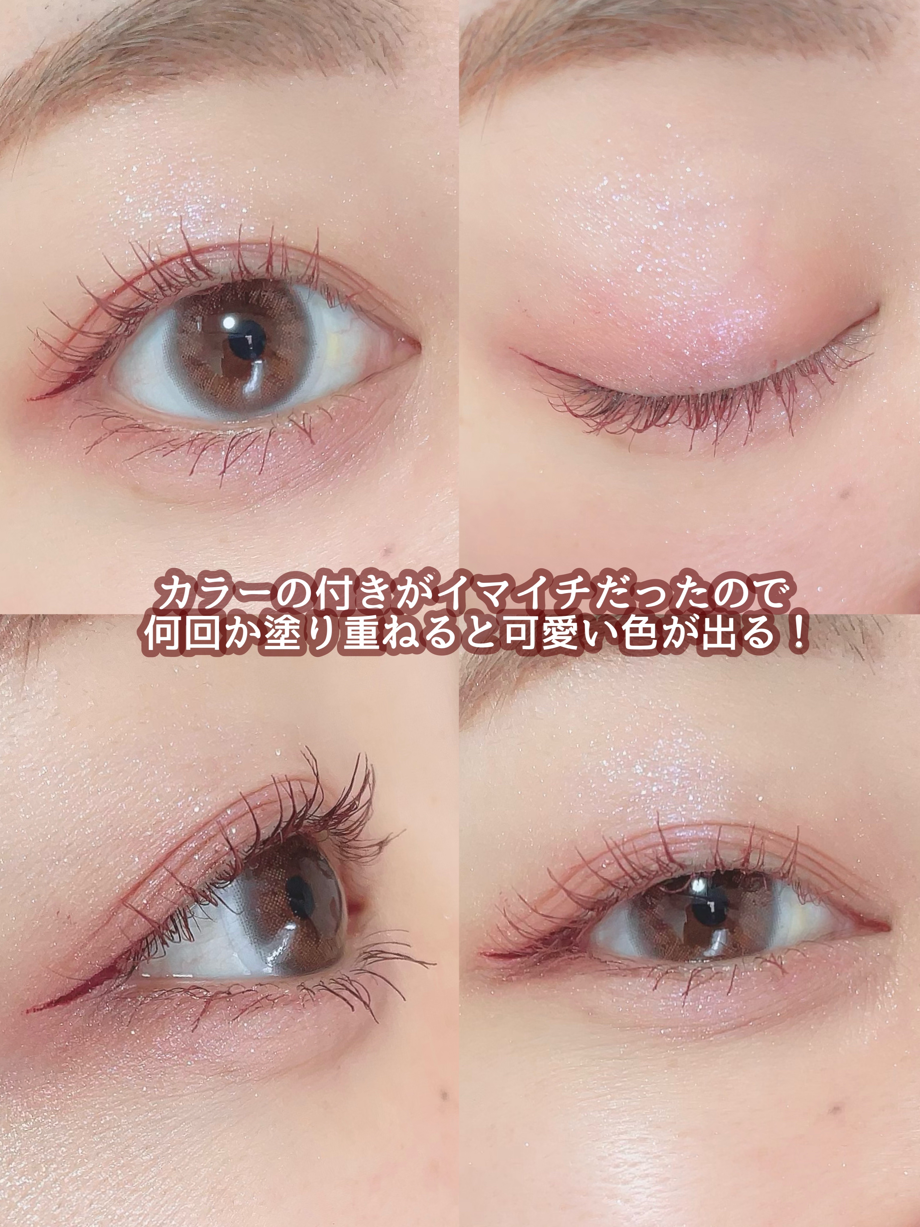 もう見ただけで絶対可愛い色なの分かる! 使いやすそうだなぁ〜って思った✌︎ 実際使ってみると発色は薄めだった! でも流行りのふんわりした感じ🤤💕 だからメイク初心者さんでも使いやすいアイパレット✨ このくすみカラーたまらないよね🤤💕 可愛いと言うより大人可愛い仕上がりになる♪ グラデにしても可愛いし 一色だけでも可愛い😍♥️ このワインモーヴはピンクメイクや赤系メイクにめちゃくちゃ合うの!! マスカラもアイシャドウも両方オススメです💕
