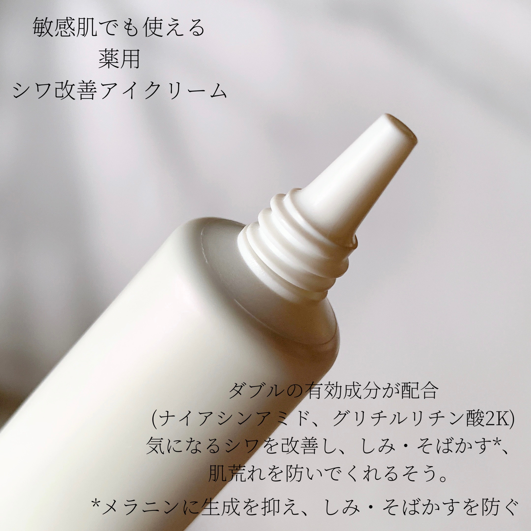 - 【敏感肌も使える薬用シワ改善アイクリーム】 ダブルの有効成分配合。気になるシワを改善し、しみ・そばかす*1、肌あれを防ぎます。 ●ナイアシンアミド:シワ改善&しみ予防 ●グリチルリチン酸2K:肌あれ予防 ハリを与えつや肌に導く「ハリシェイプペプチドWR*2」配合。 使い続けるたび、シワを改善し、うるおってハリのある明るい印象の目元へ。 エイジングケア:年齢に応じたお手入れケア *1メラニンの生成を抑え、しみ・そばかすを防ぐ *2ヤシ油脂肪酸水解コラーゲンK (販売名:ミノンアミノモイストAE)【医薬部外品】