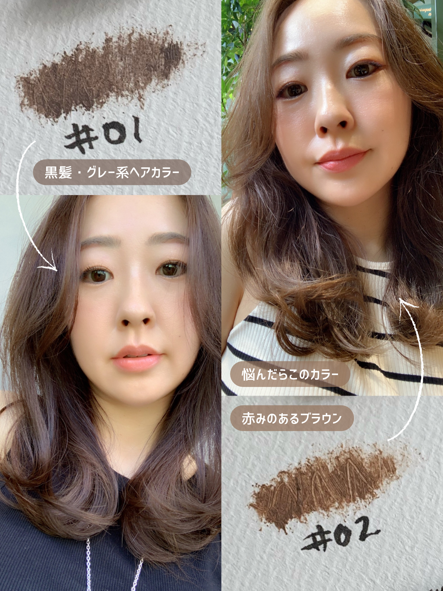 ✔️01 グレーストープ・濃いめのチャコールグレー・落ち着いたトーンのカラー・黒髪の方、髪を染めていない方、グレー系ヘアカラーの方におすすめ!・洗練された印象的な眉メイクに! ✔️02 マイルドウッディー・王道ブラウン・黄みが少なく、やや赤みのあるブラウンカラー・落ち着いたブラウン系の髪色の方におすすめ!・どんなメイクとも相性バッチリ ✔️03 モダンベージュ・大人気カラー・ブリーチしていない眉も一瞬でハイトーンに!・アッシュ系の明るい髪色の方におすすめ!・ニュアンスメイク、抜け感メイクと相性バッチリ ✔️05 ダスキーローズ・日本限定カラー・03のカラーに少しピンク色が足されたカラー・ピンク色が強すぎないので使いやすい・パープル系、暖色系の明るい髪色におすすめ!・ピンクメイクと相性バッチリ ❤︎地肌につきにくい❤︎長時間色味がキープされる❤︎ブリーチしていなくても眉の色を簡単にチェンジできる❤︎カラーバリエーションが豊富❤︎容量が多いのか、なかなか無くならない