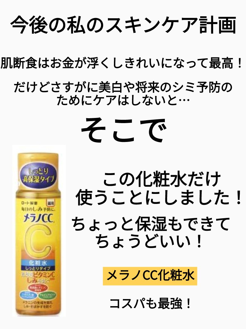 肌断食とは? 開始前にあった肌荒れがなくなった! 一回肌荒れが悪化したもののその後良くなって感動🥹 なんならスキンケアしないほうがいいんじゃないかとまで思えてきた…😿いままでのお金は何だったのか…💸 いまはメラノCCの化粧水だけ塗ってみてます!