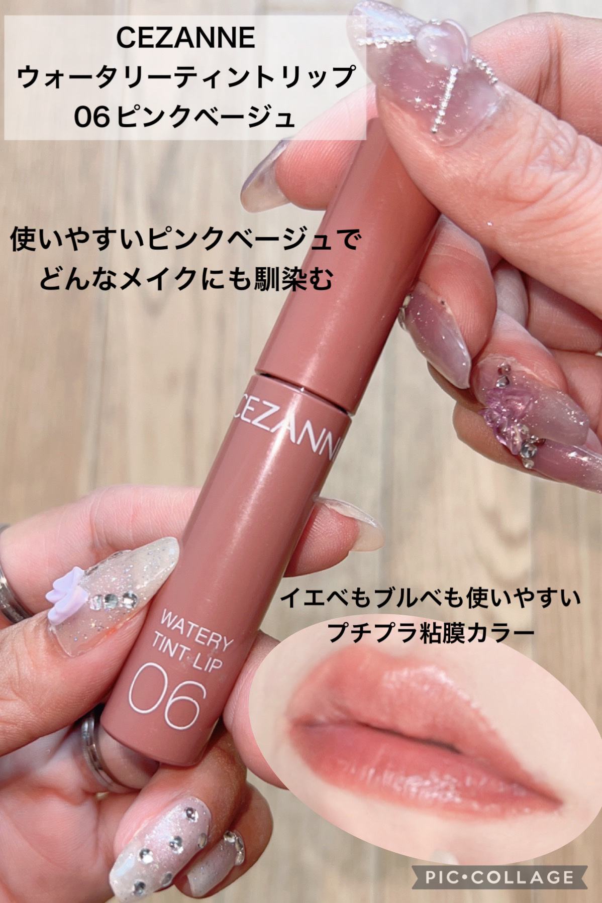 CEZANNE ウォータリーティントリップ税込660円09 ピオニーピンク白みを1滴混ぜたようなピュアなピンク🩷白みのあるピンクで、ブルベさん向けかな?と思ったのですが、思いの外赤みもあるので、イエベさんでも全然使えるカラーだと思いました💖6...