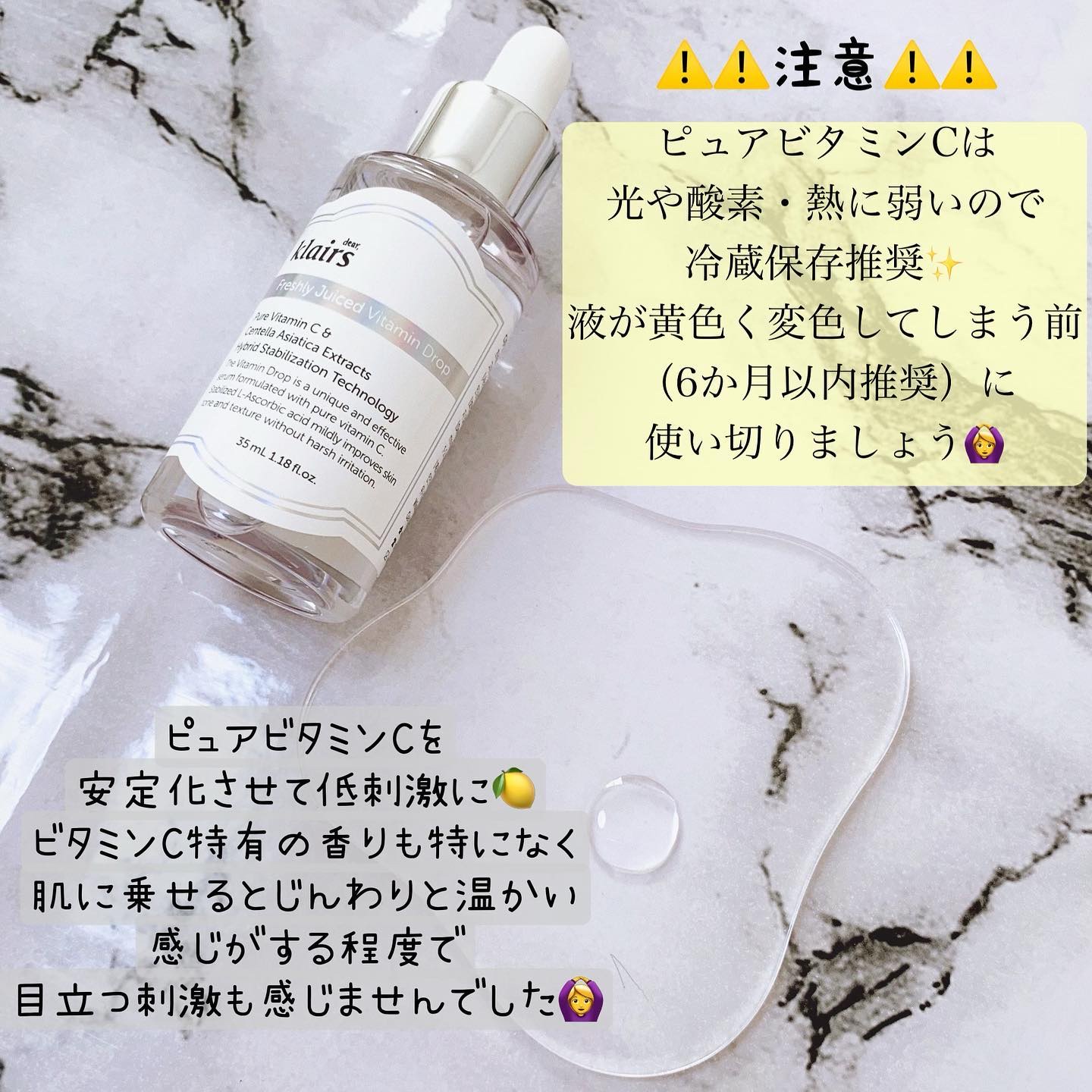 ピュアビタミンCを安定化させ、低刺激にしたこの美容液✨ ビタミンC特有の気になる香りも特になく 肌に乗せるとじんわりと温かい感じがする程度で 2週間ほど使用していますがお肌がつるんとしてきた気がします✨ ピュアビタミンCは光や酸素・熱に弱いので冷蔵保存推奨✨