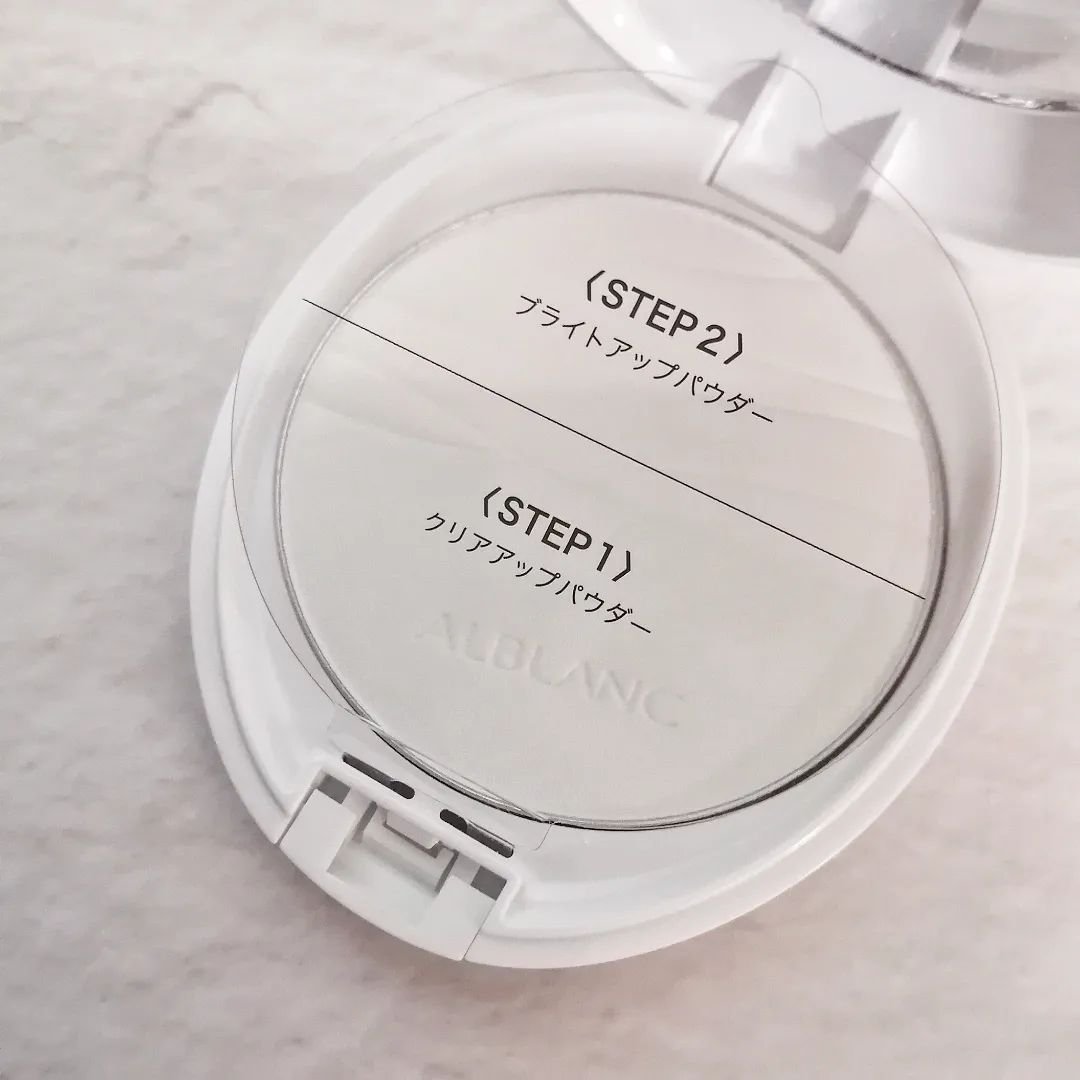 開けた瞬間から、和三盆のようなきれいな色味にうっとり。こんなに綺麗だと使うのがもったいない。 パフとブラシ両方ついているので、好みに合わせて使い分けOK。コンパクト、パフ、ブラシ、それぞれにケース付き。 その点、このパウダーは、粉っぽさがなく、白っぽくもならず、自然なつけ心地でツヤ感もあり。テカテカにはならないです。ゆらぎ肌で凹凸ができてる所に使っても、そこが強調されるような感じにはならなかった。 つけてても薄付きで効果ある?って感じだったけど、使ってない時に比べると化粧崩れは抑えられてます。 コンパクトとパフ、またはコンパクトとブラシがまとめて収納できたらもっと使いやすい。