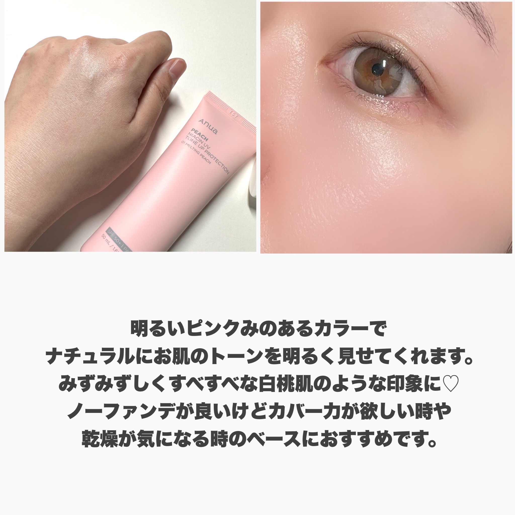 Anua 桃ナイアシンUVトーンアッププロテクション¥2950✔️メイク下地・日焼け止め・ノーファンデまでオールインワントーンアップクリーム✔️SPF50PA++++✔️桃エキス、ナイアシンアミド、ビタミン12配合◇質感滑らかでのびが良く肌に...