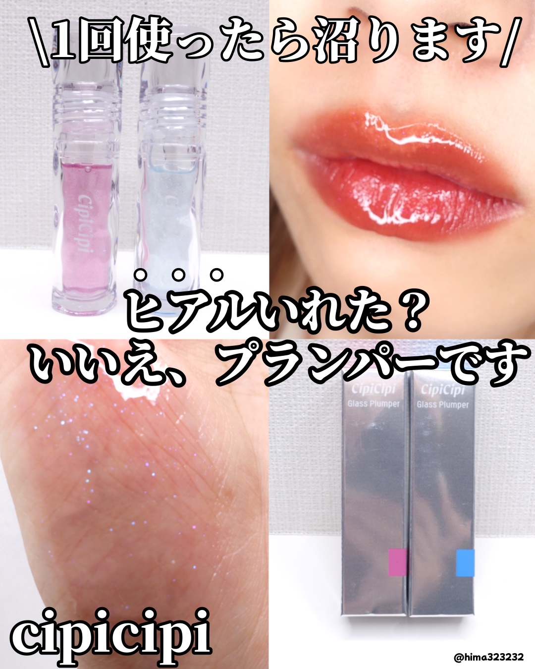 CipiCipiのガラスプランパー既存色も合わせて並べてみるとめちゃくちゃ可愛い…🥹💘 それぞれのカラーに合わせて香りが違うのも好きすぎる…今回の限定新色はしっかりとゴールドラメが入ってるけど、既存色はカラーもラメも控えめなので日常使いにも◎ ぜひ気になった方は、チェックしてみてください🫶🏻️💓