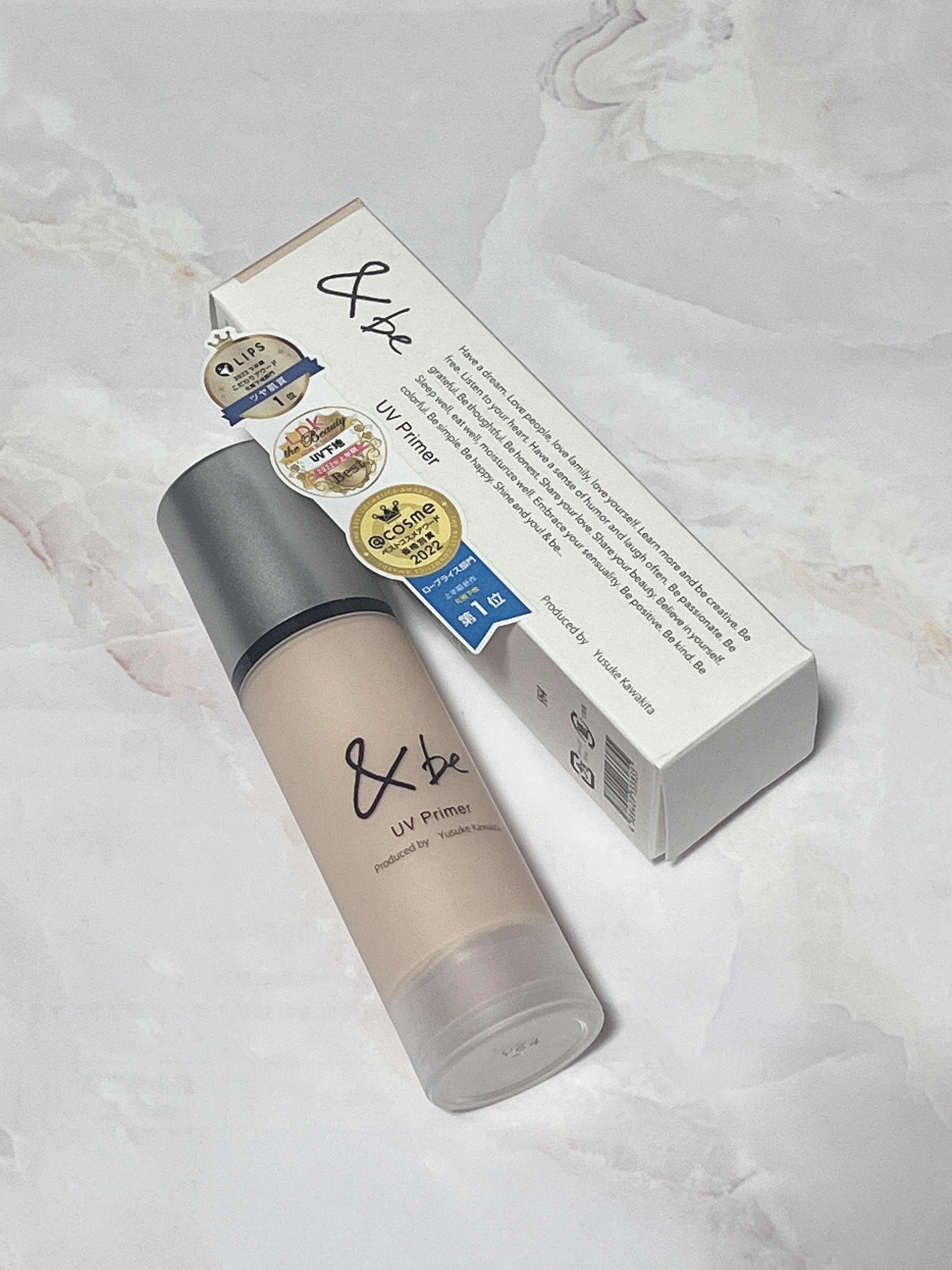 最近ノーファンデをはじめたお友達の肌がすごくキレイで。日焼け止めとか何使ってるのか聞いたらこれだよって教えてくれたので、さっそく私も使い始めました♡ &be(アンドビー)「UVプライマー」下地なんだけど、カバー力が高めでとにかくツヤがキレイ。肌にみずみずしい透明感を与える微細パールが高配合されてるんだそう。 SPF50+・PA++++と高い紫外線カット効果をノンケミカル処方で実現。鉱物油、紫外線吸収剤、石油系界面活性剤、タール系色素、合成香料不使用のフリー処方で、石鹸オフできるのも嬉しいポイント。