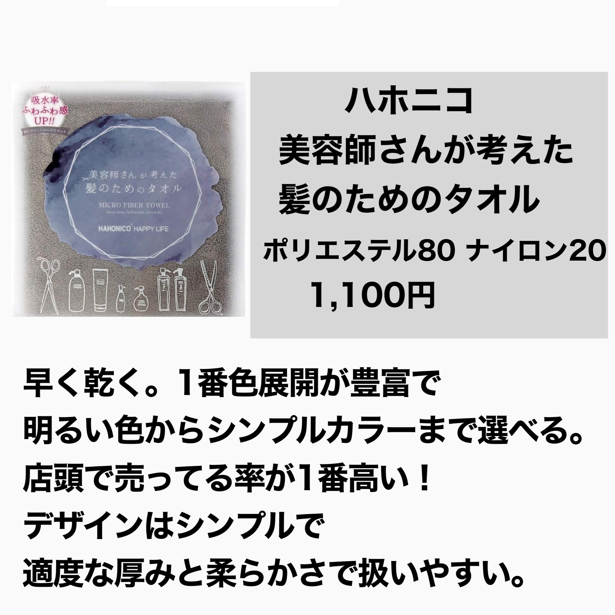ハホニコハッピーライフ ヘアドライマイクロファイバータオル | 1,100円 |