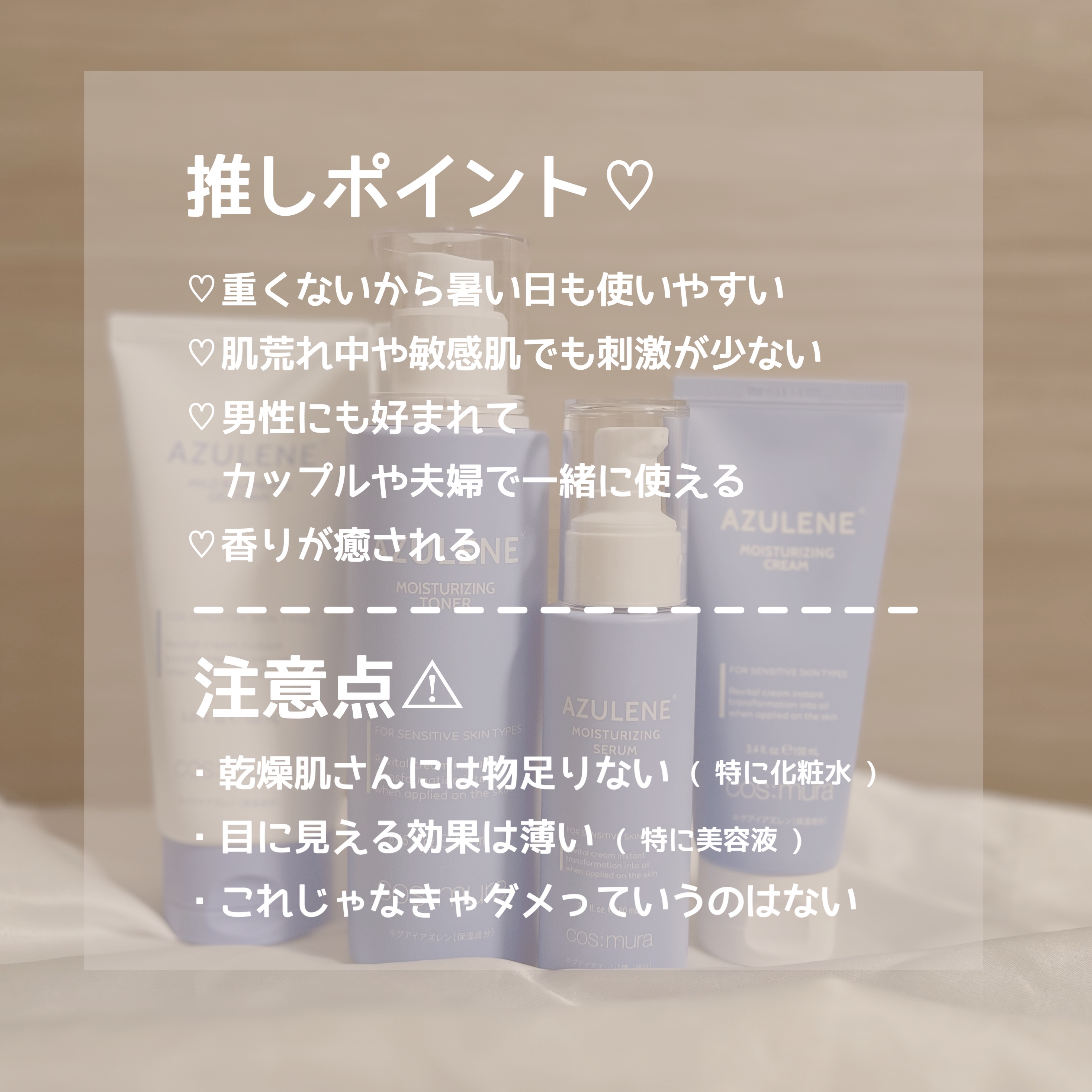 ポンプタイプで出す化粧水🧴 なんとこの化粧水250mlと大容量! なので惜しむことなくパシャパシャ使える😆 乾燥肌、脂性肌どちらにも使えるクリーム! こちらも100mlという大容量サイズ🧴 少し青みがある商品なのですが人工色素ではなくアズレン成分の青み🫧 安心して使うことができました✨