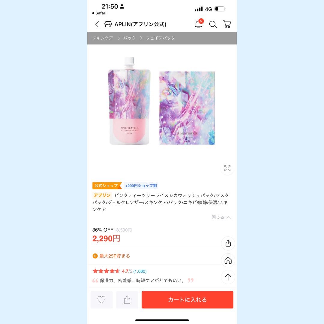 今日のパックは大好きアプリンの💕APLINピンクティーツリーライスシカウォッシュオフパックザラつく古い角質をケアしてパッと明るくくすみOFFしてくれる。クリームタイプでピンクティーツリーシリーズ使ってる人は分かると思うけどあのいい香りをまとえ...