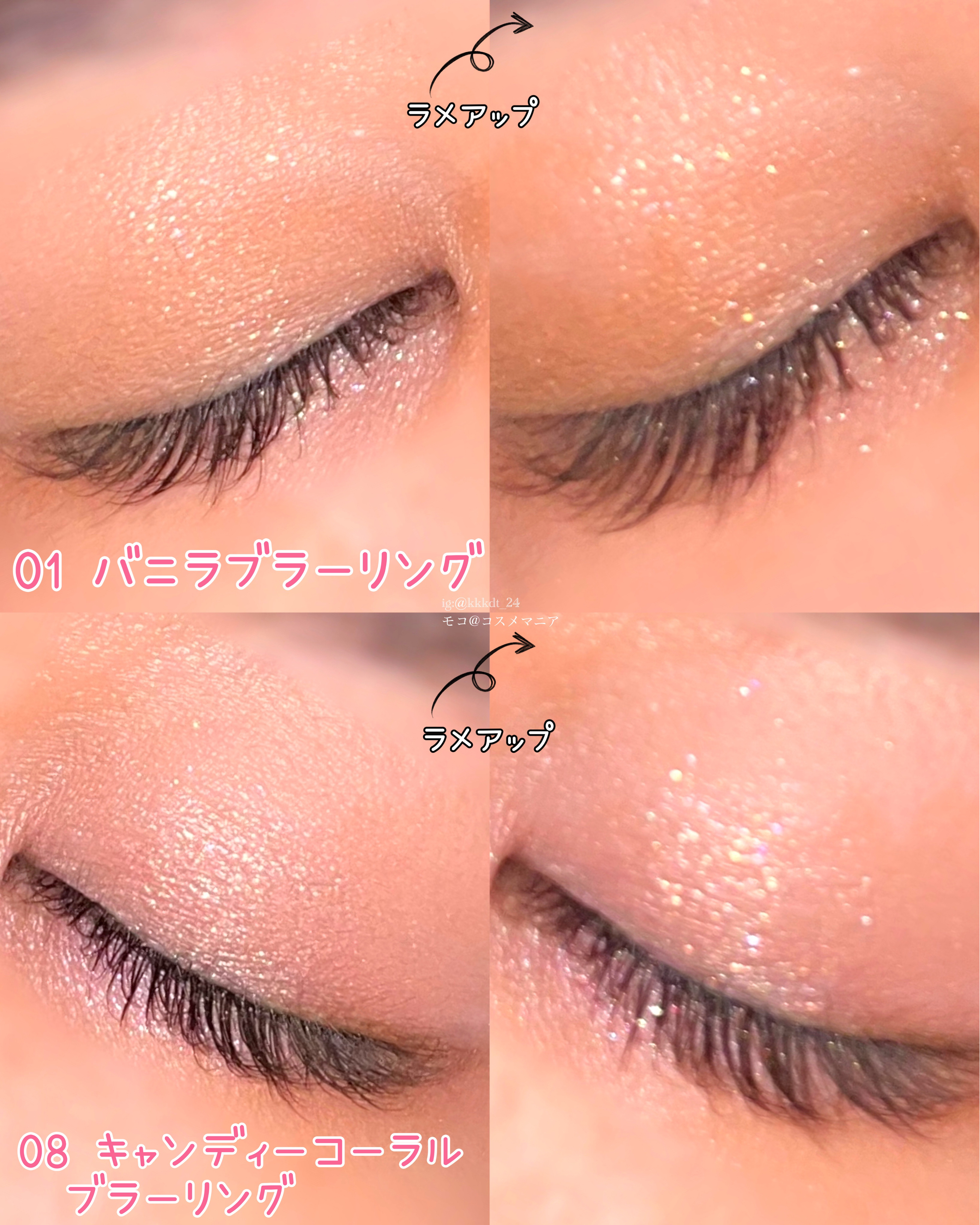 - <02 ライブリーブラーリング> タルク、マイカ、酸化チタン、ナイロン 12、シリカ、ステアロイルオキシステアリン酸オクチルドデシル、フェニルトリメチコン、ミリスチン酸Mg、ジメチコン、メチルプロパンジオール、ヘキサ(ヒドロキシステアリン酸/ステアリン酸/ロジン酸)ジペンタエリスリチル、リンゴ酸ジイソステアリル、酸化鉄、黄4、プロパンジオール、黄5、赤226、水添レシチン、水酸化Al、メチコン、カルミン、マルトデキストリン <03 サンセットブラーリング> ジメチコン、合成フルオロフロゴパイト、酸化チタン、メタクリル酸メチルクロスポリマー、マイカ、ホウケイ酸(Ca/チタン)、ジエチルヘキサン酸ネオペンチルグリコール、ラウリン酸ヘキシル、(ジメチコン/ビニルジメチコン)クロスポリマー、ナイロン 12、(セバシン酸/イソパルミチン酸)ジグリセリル、セスキイソステアリン酸ソルビタン、ミリスチン酸Mg、ヘキサ(ヒドロキシステアリン酸/ステアリン酸/ロジン酸)ジペンタエリスリチル、フェノキシエタノール、プロパンジオール、合成ワックス、酸化鉄、シリカ、トリエトキシカプリリルシラン、酸化スズ、カルミン、トコフェロール <05 ミューテッドコーラルブラーリング> タルク、マイカ、酸化鉄、シリカ、ナイロン 12、グンジョウ、ステアロイルオキシステアリン酸オクチルドデシル、フェニルトリメチコン、ミリスチン酸Mg、窒化ホウ素、ステアリン酸Mg、メチルプロパンジオール、ジメチコン、プロパンジオール、トリエトキシカプリリルシラン、ラウロイルリシン、水添レシチン、カルミン、マルトデキストリン <07 ソーダコーラルブラーリング> マイカ、オクテニルコハク酸デンプンAl、酸化チタン、ステアロイルオキシステアリン酸オクチルドデシル、フェニルトリメチコン、ミリスチン酸Mg、酸化鉄、マンガンバイオレット、窒化ホウ素、ステアリン酸Mg、メチルプロパンジオール、シリカ、ジメチコン、プロパンジオール、ステアリン酸ジメチコノール、トリエトキシカプリリルシラン、グンジョウ、ヒドロキシプロピルビスパルミタミドMEA、マカデミア種子油、サラソウジュ種子脂、水酸化Al、メチコン、カオリン、赤226 <14 キャラメルブラーリング> 1.ホウケイ酸(Ca/チタン)、タルク、マイカ、酸化チタン、ジエチルヘキサン酸ネオペンチルグリコール、フェニルトリメチコン、シリカ、ヘキサ(ヒドロキシステアリン酸/ステアリン酸/ロジン酸)ジペンタエリスリチル、ミリスチン酸Mg、リンゴ酸ジイソステアリル、ネオペンタン酸イソステアリル、ステアロイルオキシステアリン酸オクチルドデシル、マカデミア種子油、メチルプロパンジオール、ポリブテン、ステアリン酸Mg、プロパンジオール、ジメチコン、ラウロイルリシン、トリエトキシカプリリルシラン、酸化スズ、酸化鉄、カルミン 2.ホワイトソルト:ホウケイ酸(Ca/チタン)、酸化チタン、ジフェニルシロキシフェニルトリメチコン、ホウケイ酸(Ca/Na)、ポリプロピレン、マイカ、オクチルドデカノール、リンゴ酸ジイソステアリル、ダイマージリノール酸水添ヒマシ油、ポリブチレンテレフタレート、ダイマージリノール酸(フィトステリル/イソステアリル/セチル/ステアリル/ベヘニル)、ホウケイ酸(Ca/Al)、アクリレーツコポリマー、(エチレン/VA)コポリマー、メチルプロパンジオール、プロパンジオール、シリカ、ジステアルジモニウムヘクトライト、ステアリン酸Mg、炭酸プロピレン、酸化スズ、酸化鉄 3.バタークリーム:タルク、マイカ、酸化チタン、シリカ、ステアロイルオキシステアリン酸オクチルドデシル、フェニルトリメチコン、マカデミア種子油、メチルプロパンジオール、オクチルドデカノール、ヘキサ(ヒドロキシステアリン酸/ステアリン酸/ロジン酸)ジペンタエリスリチル、リンゴ酸ジイソステアリル、ジメチコン、ミリスチン酸Mg、ステアリン酸Mg、プロパンジオール、ステアリン酸ジメチコノール、水添レシチン、トリエトキシカプリリルシラン、水酸化Al、メチコン、酸化鉄 4.イエロービーン:タルク、マイカ、オクテニルコハク酸デンプンAl、シリカ、酸化チタン、トリ(カプリル酸/カプリン酸)グリセリル、トリエチルヘキサノイン、酸化鉄、ミリスチン酸Mg、マカデミア種子油、メチルプロパンジオール、ジメチコン、トリエトキシカプリリルシラン、プロパンジオール、(ビニルジメチコン/メチコンシルセスキオキサン)クロスポリマー、ヘキサ(ヒドロキシステアリン酸/ステアリン酸/ロジン酸)ジペンタエリスリチル、ステアリン酸Mg、水酸化Al、メチコン、グンジョウ、黄4 5.ベージュ:タルク、マイカ、酸化チタン、ステアロイルオキシステアリン酸オクチルドデシル、フェニルトリメチコン、シリカ、マカデミア種子油、サラソウジュ種子脂、ミリスチン酸Mg、メチルプロパンジオール、トリエトキシカプリリルシラン、ジメチコン、ステアリン酸Mg、プロパンジオール、水添レシチン、ラウロイルリシン、ステアリ