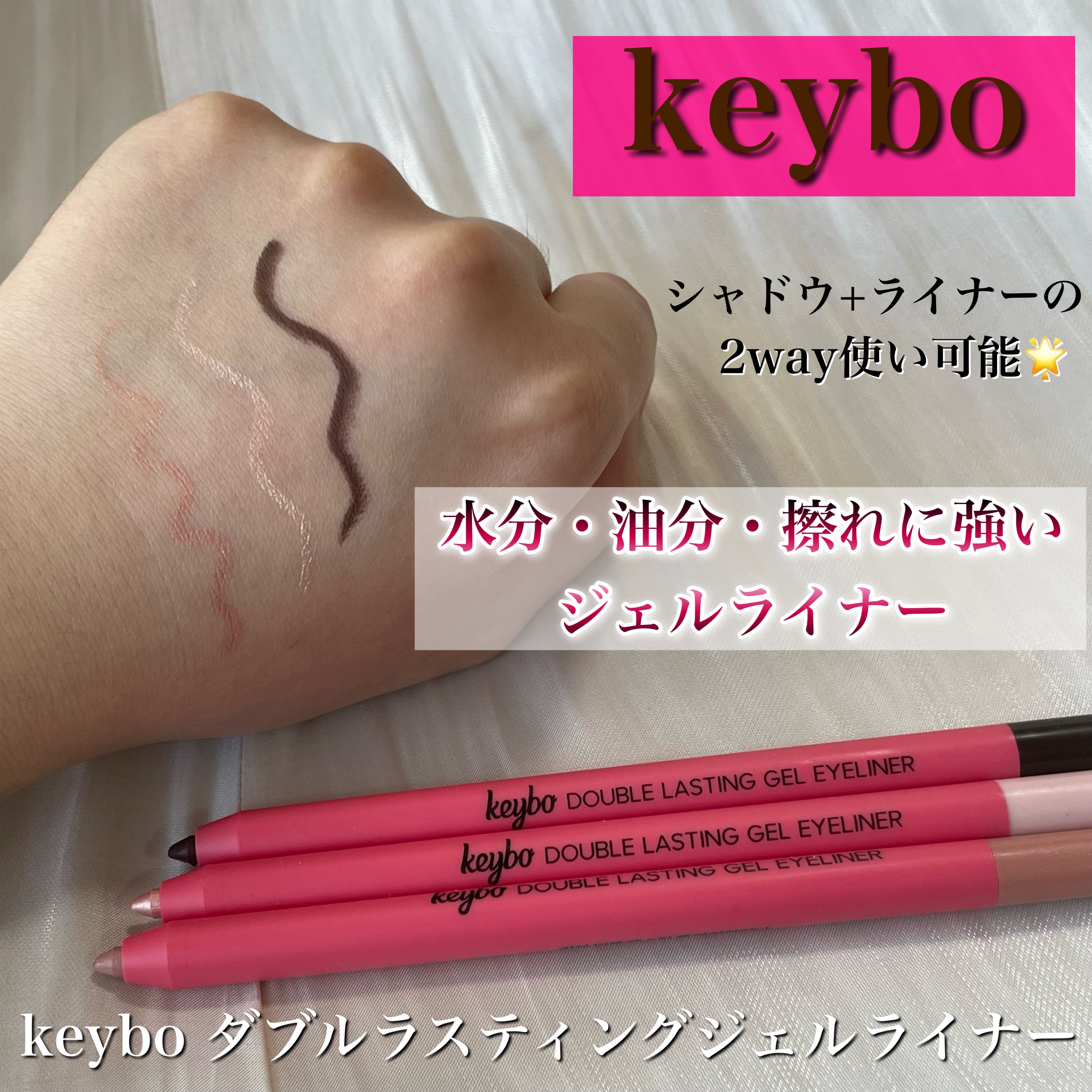 \keyboダブルラスティングジェルライナー/keybo様よりいただきました!ありがとうございます🤍以前も投稿させていただいたカラーの色違い✨・スターライト綿菓子ほんのりピンクっぽさもあるカラーで、ラメがぎっしり入っていて可愛い💖涙袋に使うと...