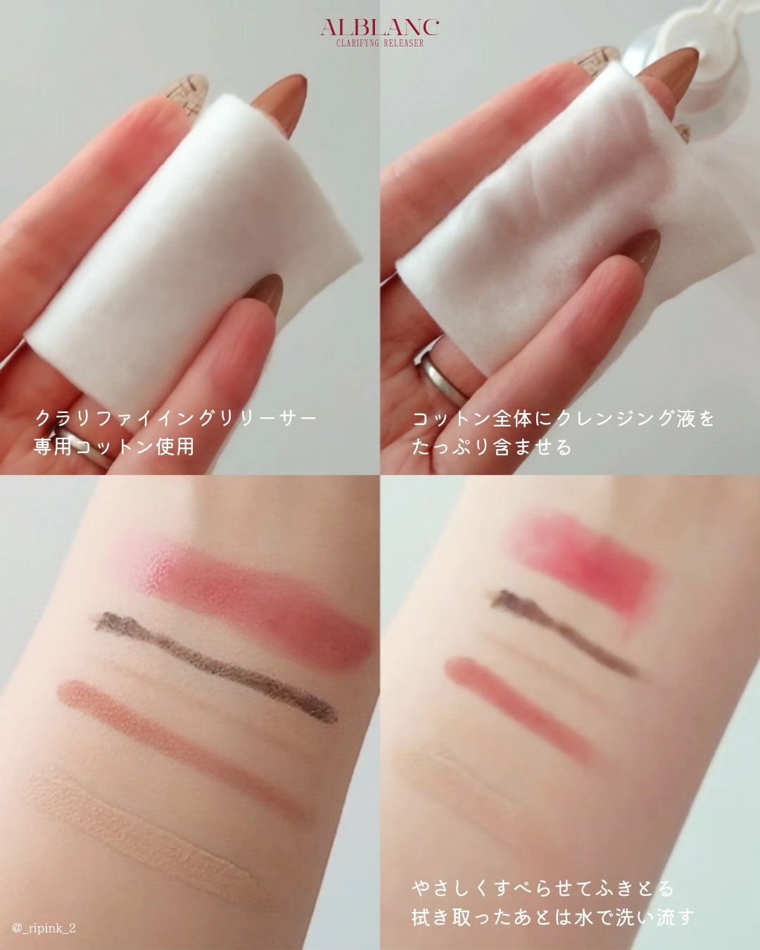 メイクも角栓もスルッとオフ!!#ALBLANC#クラリファイイングリリーサー角栓の崩壊とメイク落としを両立する日本初の成分アプローチ。メイク落ちを実現する油層成分(イソドデカン、イソデシルグリセリルエーテル)と、角栓を除去する水層成分(トロメ...