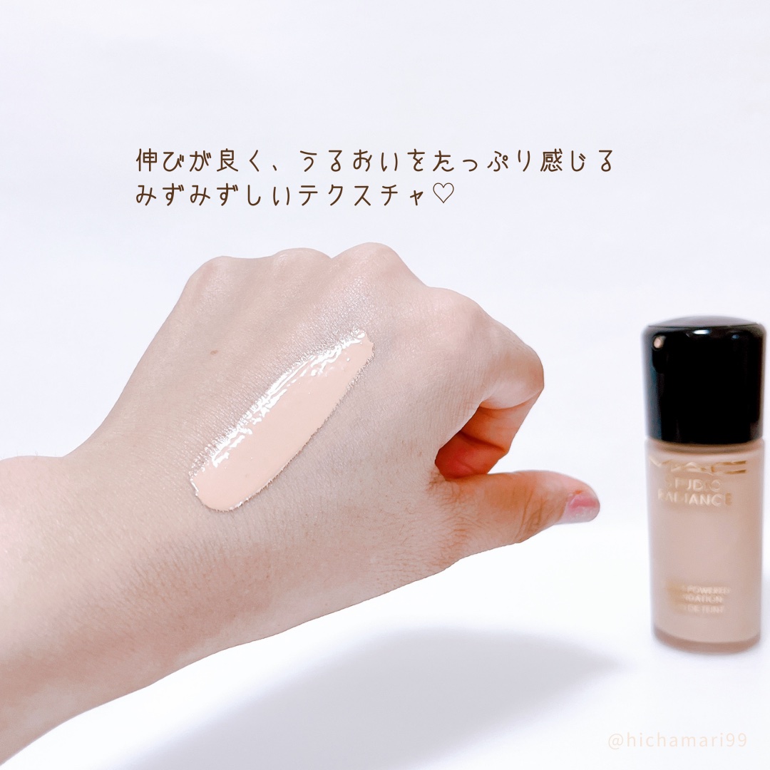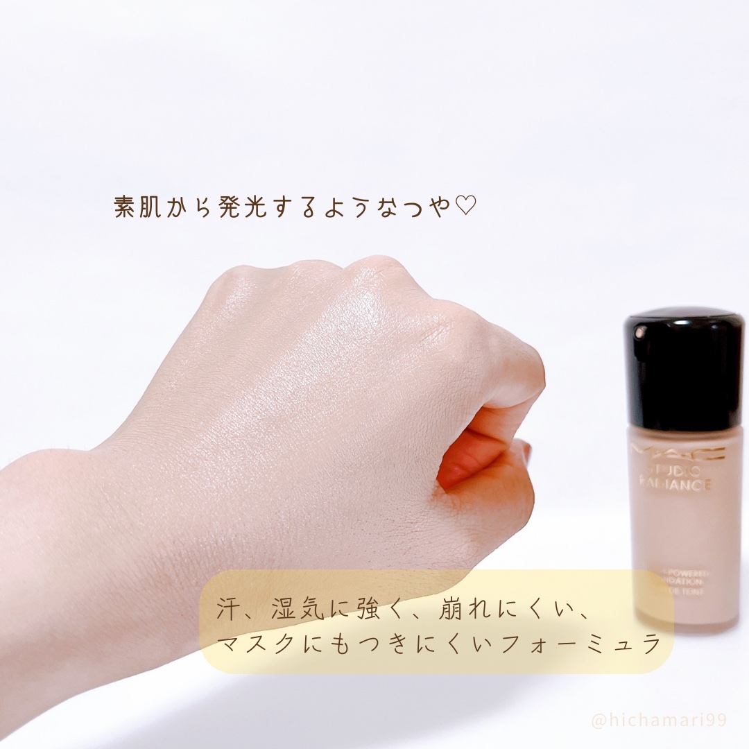 - ■素肌から発光するようなつや。80%美容液ベース。 M·A·Cアーティストが作り出すような、透明感ある仕上がり。つや肌12時間続く 肌の悩みをカバーするためのファンデーションから、美しい肌を魅せるためのファンデーションへ。 80%美容液ベース*1、 33種のスキンケア成分*1 配合のなめらかなテクスチャーで、肌に潤いと透明感をもたらすことで、まるで素肌から発光するような、透明感のあるつや肌へ仕上げます。 つけたての透明感ある仕上がり。フレッシュなツヤ感のある仕上がりが12時間*3続きます。 33種のスキンケア成分、主な成分: ヒアルロン酸Na(保湿成分)、ホホバ種子油 (保湿成分)、オリーブ油 (保湿成分)、ヒマワリ種子エキス (保湿成分)、オオムギ種子エキス (保湿成分)、キュウリ果実エキス (保湿成分) *1 美容液ベース及びスキンケア成分とは、着色剤、製品の防腐剤や安定剤を除く、水や保湿成分、皮膚コンディショニング成分のこと *2 化粧もち(色落ち)データ取得済み (当社調べ。効果には個人差があります)