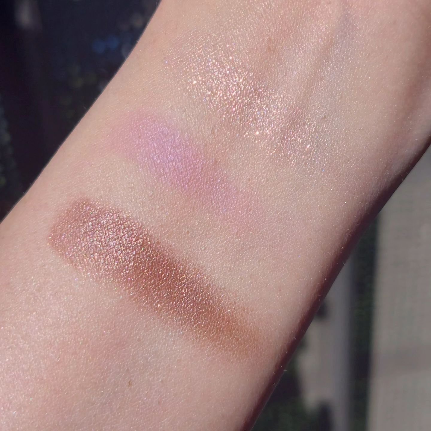 RMKのアイシャドウはこれがデビュー。こんなんブルベホイホイじゃん…。かわいすぎて即予約電話したわ🫠🩷 青みピンクに透明感爆発パープルにキラキララメ。締め色はグレージュっぽいブラウン。ブルベ大歓喜。 発色は調整しやすい。ピンクも見た目はビビッドだけど、ふんわり色づくので、好みの濃さにできるよ。
