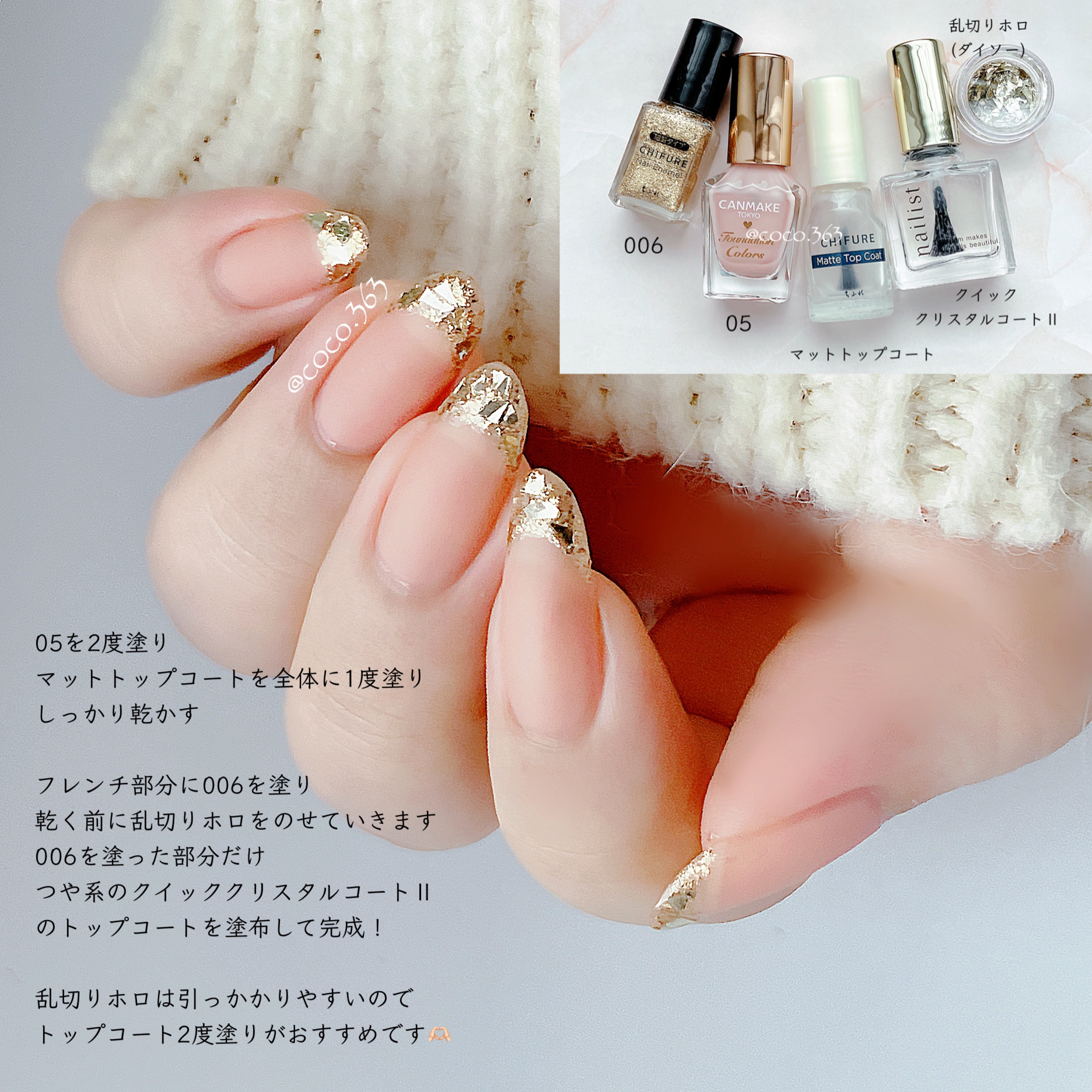 100均とプチプラマニキュアで簡単垢抜け💅🏻マットとラメでふわキラガラスフレンチ⟡.·*.︎︎︎︎︎︎☑︎詳細は2枚目からの画像でどうぞお好みのカラーで推しネイルにも✊🏻̖́-︎ネイルのまとめは↓↓↓からどうぞ♡#cocoキャンメイクネイル#...