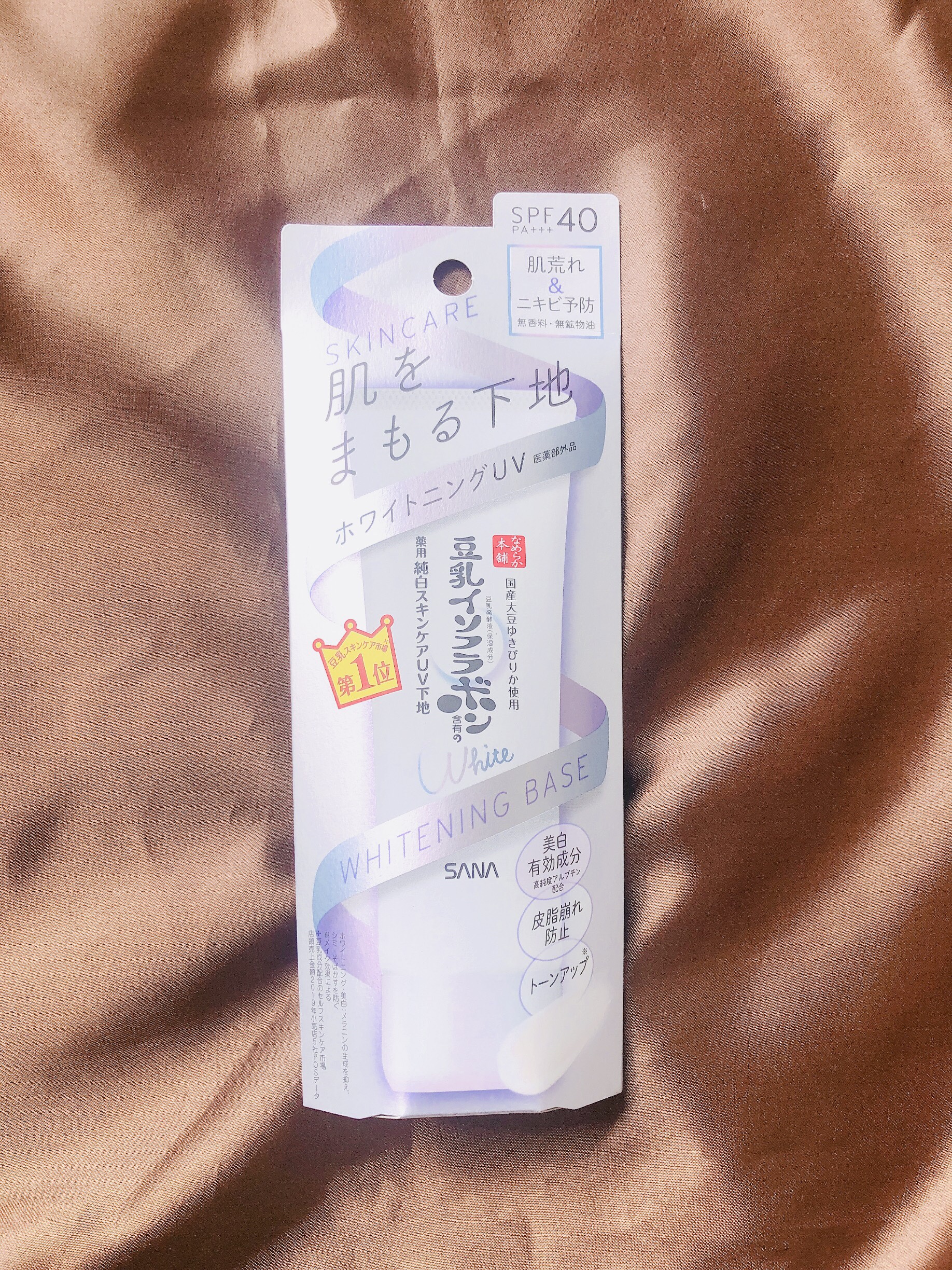- <薬用美白スキンケアUV下地> 豆乳の美白スキンケアUV下地。肌荒れ&ニキビ予防しながら美白!メラニンの生成を抑え、シミ・そばかすを防ぎます。トーンアップ(メイク効果による)&皮脂崩れ防止。化粧水・美容液・乳液・クリーム・UVカット・化粧下地の1本6役。SPF40・PA+++。[販売名:サナ なめらか本舗 薬用美白スキンケアUV下地]