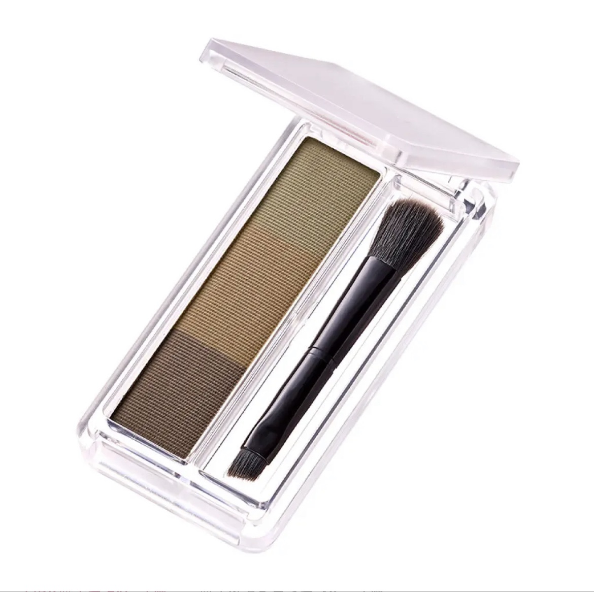 - 簡単にふんわり立体眉が完成。 ニュアンス使いもできるアイブローパウダー。 順番にぬるだけで簡単にふんわり立体眉をつくることができるパレットタイプのアイブローパウダーです。 ブラウン2色でベーシックな眉毛に、お好みでニュアンスカラーを加えてトレンド感のあるこなれた眉毛がパレットひとつで完成します。 無香料・ブラシ付 【商品特徴】 密着性の高いパウダーで、きれいな仕上がりが持続します。 使いやすいダブルエンドブラシ付。 ※材質:PBT 【仕上がりのポイント】 ・仕上がりが選べる色構成 ブラウン2色でベーシックなふんわり眉に。その上にニュアンスカラーを重ねることで、トレンド感のあるこなれ眉が完成。色んな仕上がりをパレット1つで楽しめる、3色組のアイブローパウダーです。 ・ふんわり立体感のある仕上がり 球状のふんわりパウダー*1配合で、ふんわりとしたソフトな仕上がりを実現。 ・使いやすさにこだわったダブルエンドブラシ 理想の眉毛を描くためにこだわりぬいたブラシ付。太いブラシは、筆のコシや粉含みが良く、ひとぬりで簡単に眉の形をつくれます。細いブラシは、筆が割れにくく、細かい線が描きやすい斜めカットの筆先です。 *1…感触改良成分:シリカ 【使用方法】 ・?のナチュラルカラーをブラシ(太)にとり、眉頭から眉山に向かって描きます。 ・?のダークカラーをブラシ(細)にとり、眉山から眉尻まで細く描きます。 ・お好みで?のニュアンスカラーをブラシ(太)で眉毛全体になじませます。