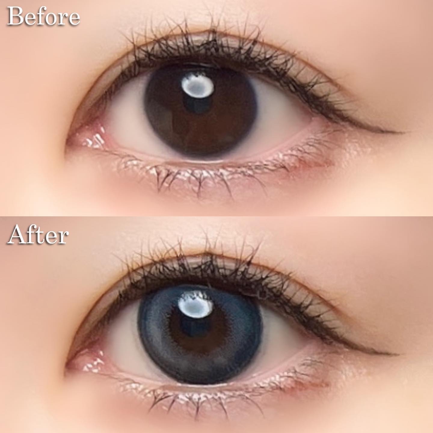 個性的なカラーからナチュラルなものまで幅広いラインナップで見てて楽しかったです! 透明感のあるブルーグレーが瞳に溶け込み、リアルなグレーアイに見せるレンズ。 透け感のある色味だけどしっかり発色するナチュラルハーフ系カラコン。着色直径も小さめなので着せ替え感があってかわいい。 N's COLLECTIONはレンズのつけ心地もすごく良くて他のカラーもとっても可愛いです!