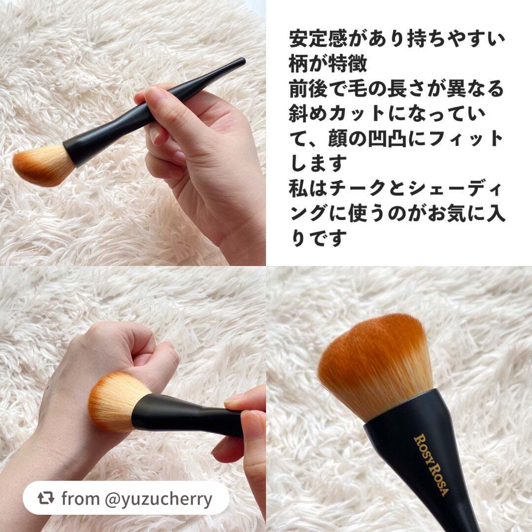 - たっぷりやわらかふわっふわな筆先で肌あたりやさしい仕様。 フェイス・チーク・ハイライト・シェーディングなどお肌の幅広い面に使えるパウダー専用ブラシ。 人間工学に基づいて設計した柄は安定感があり持ちやすくメイクがしやすい!